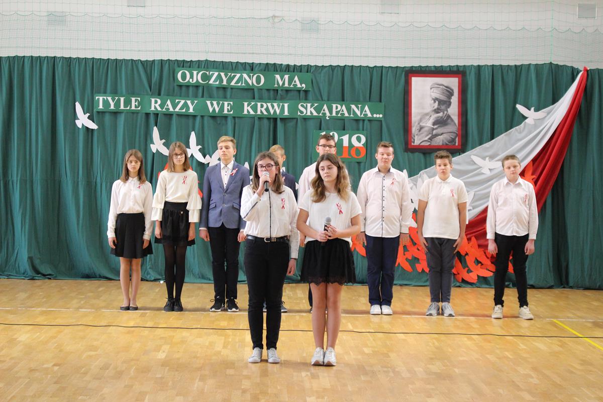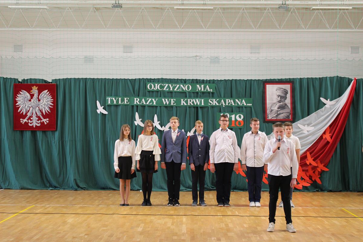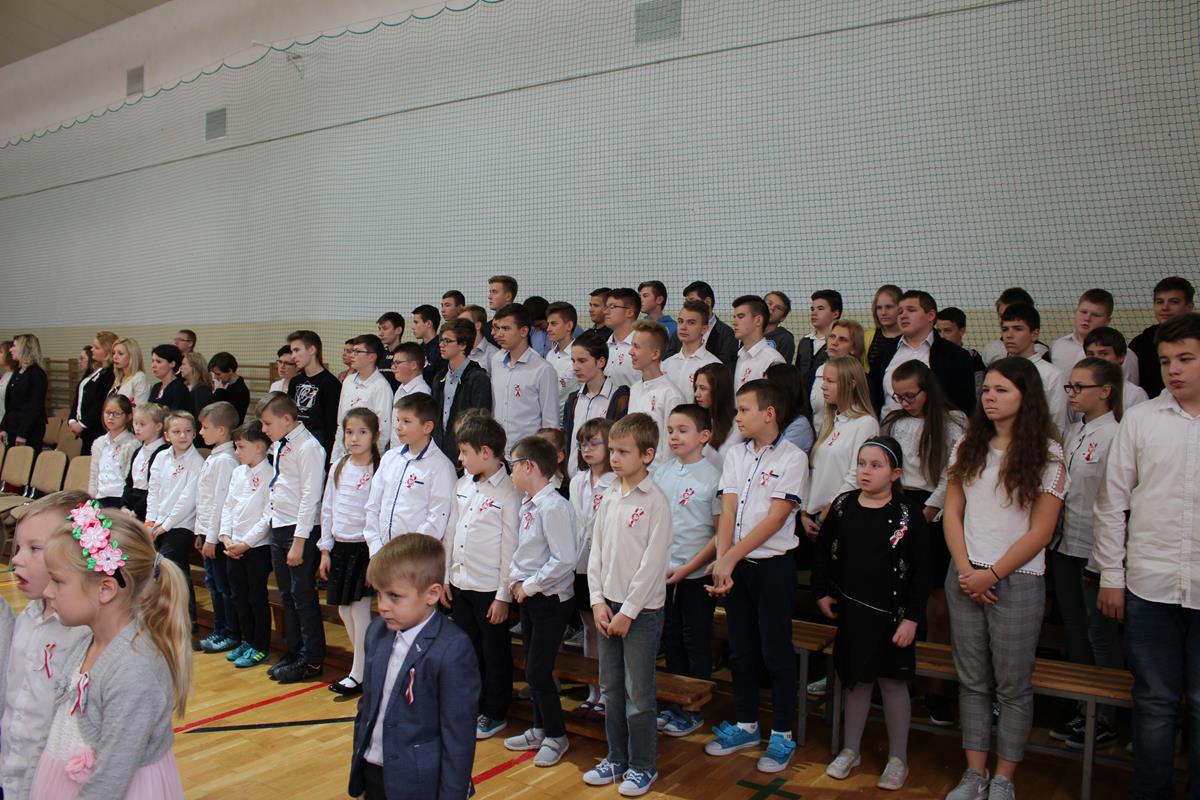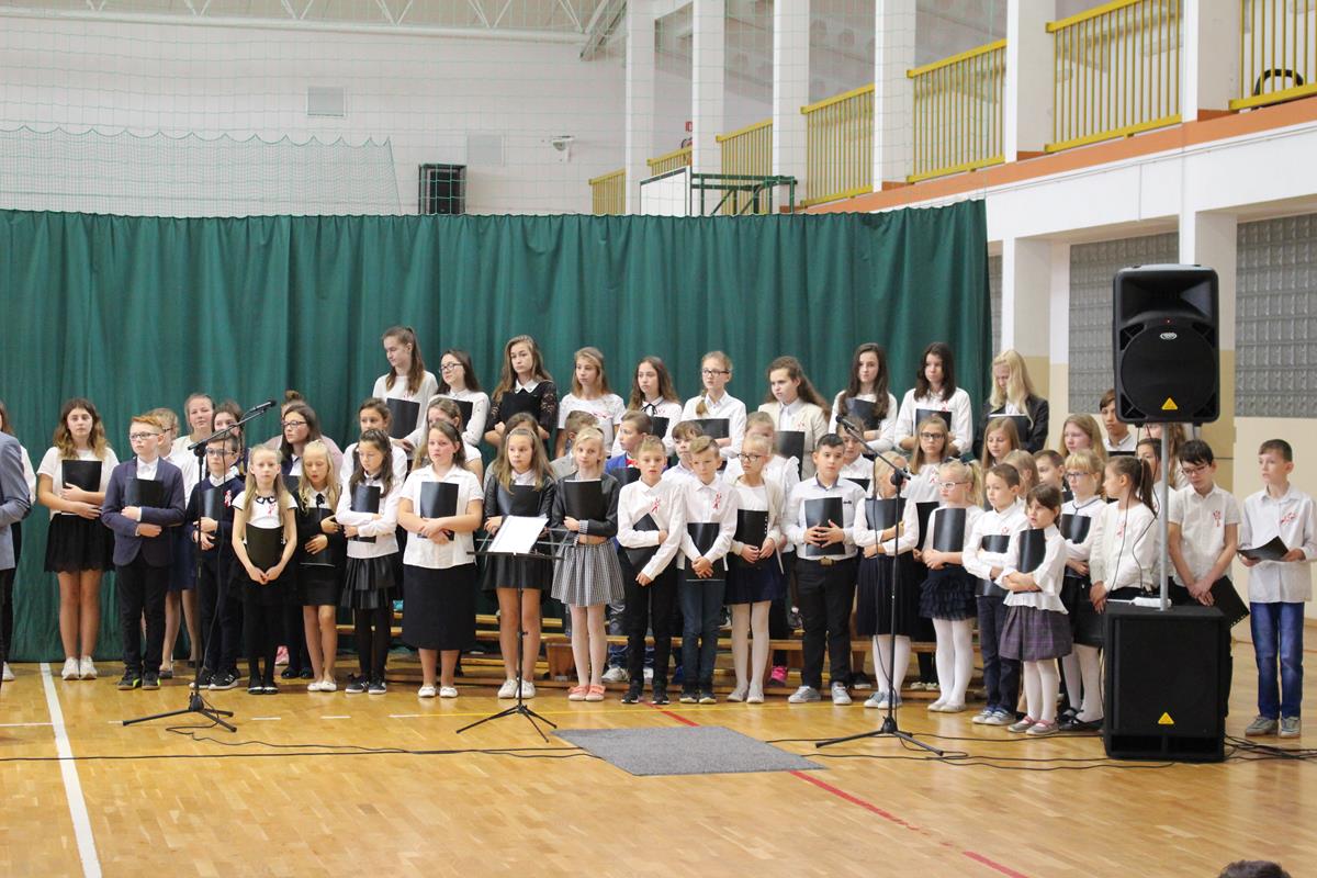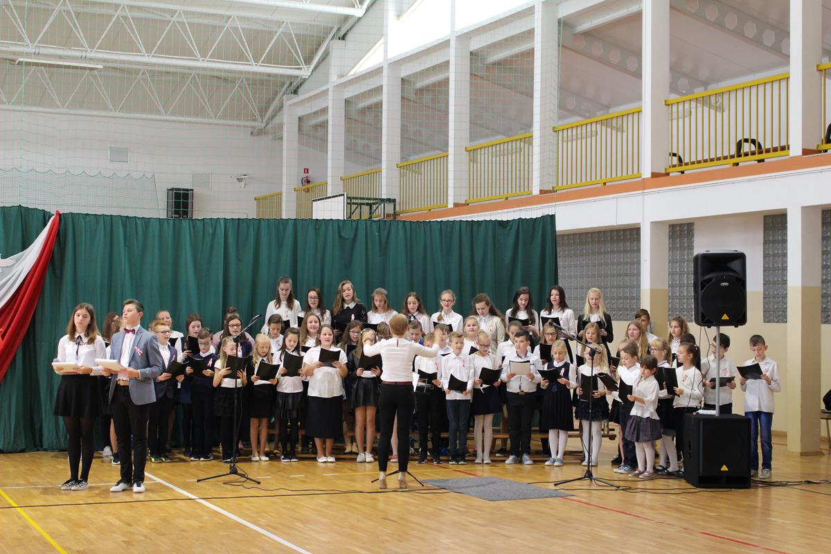 Całość dopełniła wspaniała oprawa muzyczna. Goście mogli wysłuchać „Legionów” czy „Żeby Polska była Polską” w wykonaniu chóru szkolnego, a także solowych wystąpień – wybrzmiały „Katyń”, „Ojczyzno ma” oraz „Jedna chwila”. Apel zakończyło wspólne uroczyste odśpiewanie Roty Marii Konopnickiej.
