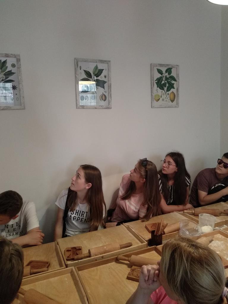 Jednodniowy wyjazd obfitował w atrakcje. Spacerując uliczkami Starego Miasta, uczniowie podziwiali wspaniałą architekturę. Młodzież została zapoznana z historią najpopularniejszych i najpiękniejszych miejsc w Toruniu. Pani przewodnik w ciekawy sposób opowiadała o pomniku Mikołaja Kopernika, Ratuszu Staromiejskim, statuetce Flisaka, Krzywej Wieży i wielu innych miejscach.