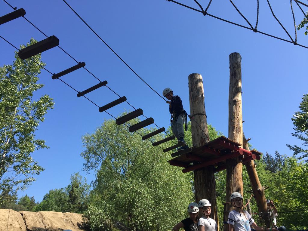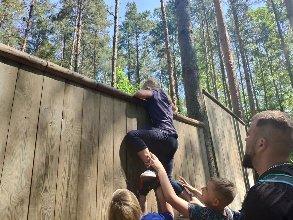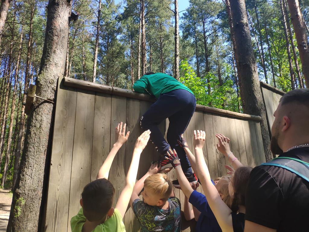 Dzień 22.05 był pełen przygód, ponieważ udaliśmy się do Adventure Park Kolibki w Gdyni. Na miejscu zostaliśmy podzieleni przez panów Instruktorów na dwie grupy. Każda z grup miała do przebycia park linowy oraz spacer po lesie, gdzie były do wykonania różne zadania. Park linowy składał się z mostów linowych, drabin, siatek, tyrolki oraz drewnianych podestów, które były zamocowane na drzewach. Uczestnicy zostali wyposażeni w bezpieczny sprzęt wspinaczkowy i przeszli szkolenie, jak obsługiwać się karabińczykami. Przeszkody zawieszone na drzewach dostarczy dzieciom mnóstwa pozytywnych emocji oraz pozwoliły pokonać różne lęki. Za to w lesie na uczestników czekały takie przeszkody jak: chiński mur, labirynt w ciemności, tor przeszkód. Po ukończeniu wszystkich przeszkód było ognisko, gdzie każdy sam mógł upiec sobie kiełbaski.
