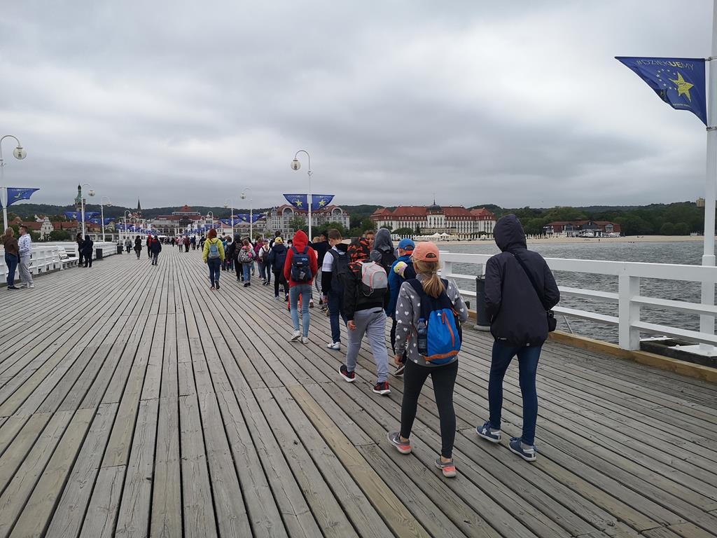Dnia 23.05 udaliśmy się do Gdyńskiego Akwarium, które mieści się aż na 3 poziomach. Na miejscu każdy sam miał możliwość zobaczyć różne gatunki zwierząt oraz roślin wodnych. Z ciekawszych okazów znajdujących się na miejscu to: konik morski, igielnik, skrzydlica ognista, anakonda, węgorze elektryczne, rozgwiazdy itp. Po obejrzeniu wszystkich sal udaliśmy się na wykład o Morzu Bałtyckim, gdzie dowiedzieliśmy się wielu interesujących faktów, a następnie odbyliśmy warsztaty z rozpoznawania muszli oraz żyjątek wodnych. Po wizycie w Akwarium Gdyńskim udaliśmy się do portu, gdzie szczęśliwie udało się nam zobaczyć "Dar Młodzieży" oraz "Dar Pomorza" czy też "ORP Błyskawica". Kolejnym punktem naszej wycieczki był Sopot, a w nim spacer po najdłuższym molo w Polsce, które mierzy aż 511,5 m. Gdy wróciliśmy do ośrodka czekały na nas dwie niespodzianki. Pierwszą z nich była lekcja o bursztynach, a drugą dyskoteka na zakończenie wyjazdu.