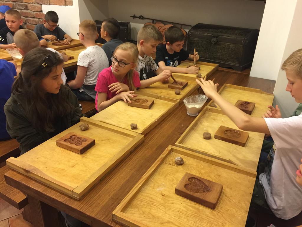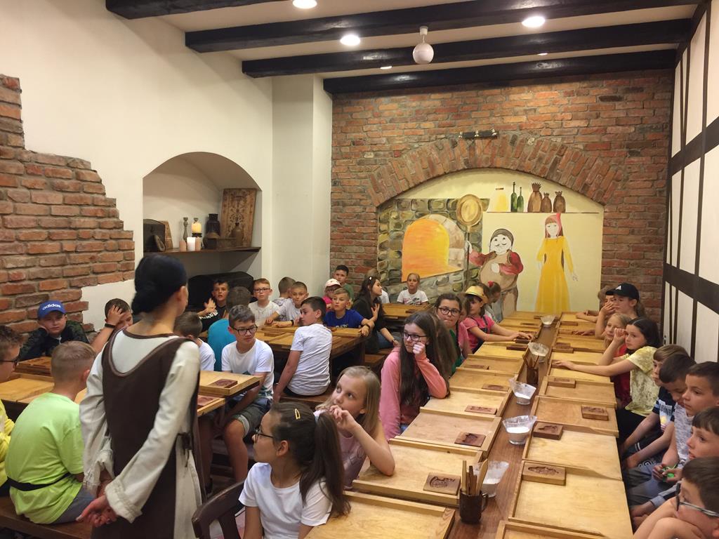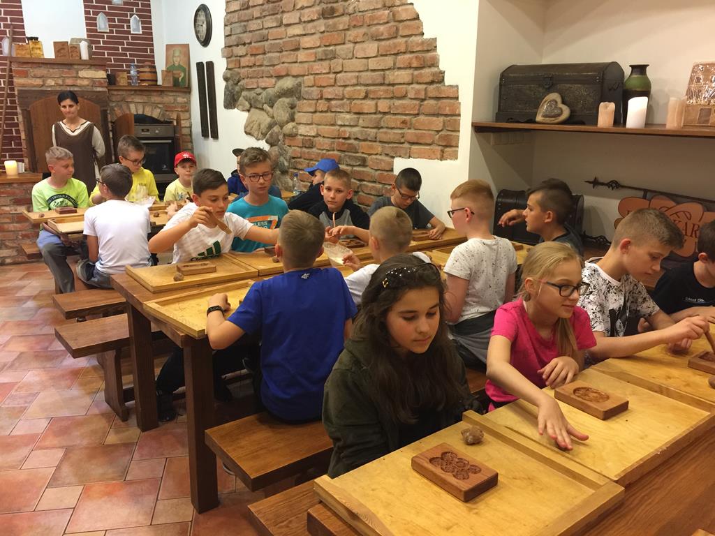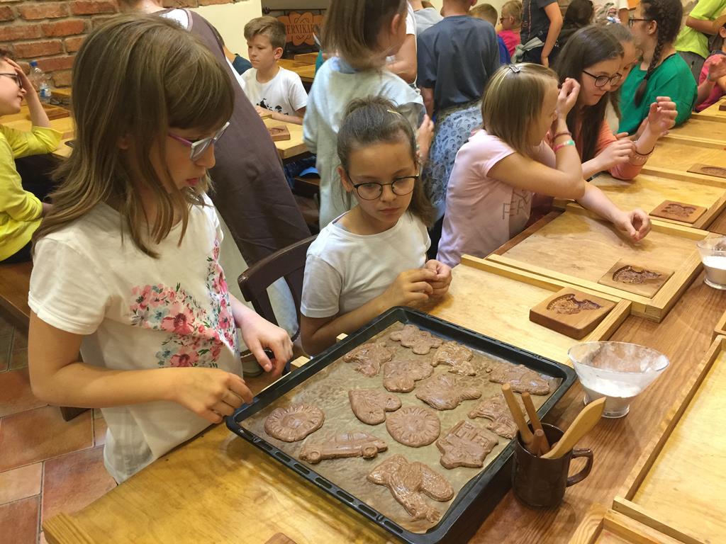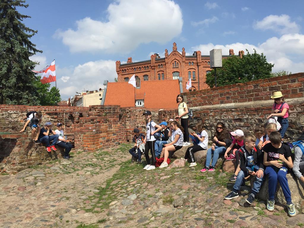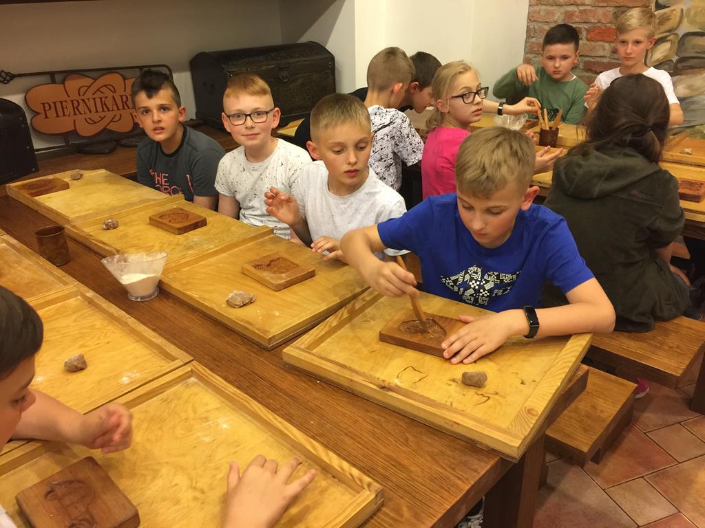 Dnia 20.05 wyruszyliśmy z samego rana, aby na godzinę 10 dotrzeć do Torunia, gdzie czekał na nas już przewodnik. Pan przewodnik odprowadził nas po mieście, gdzie zobaczyliśmy: mury miejskie, Krzywą Wieżę, dom i pomnik Mikołaja Kopernika, ruiny zamku krzyżackiego, pomnik Filusia oraz „karnego” Osiołka, fontannę z Flisakiem oraz Stare Miasto. Ostatnią atrakcją w Toruniu były warsztaty z wypiekania pierników w Piekarni Mistrza Bogumiła. Dzieci dostały ciasto, wybrały odpowiednie foremki do pierników i z ochotą zabrały się do wyrabiania pamiątkowych ciastek. W trakcie warsztatów młodzi czeladnicy zapoznali się z historia pieczenia pierników, przyprawami oraz poznali ciekawe legendy dotyczące tychże pierników. Po zwiedzaniu pięknego miasta udaliśmy się w dalszą podróż, aby dotrzeć do Kątów Rybackich, gdzie mieliśmy noclegi. Po przydzieleniu pokoi oraz zjedzeniu obiadokolacji, udaliśmy się na spacer nad brzegiem morza, gdzie szukaliśmy muszelek oraz bursztynów. Wszystkie dzieci były zachwycone.