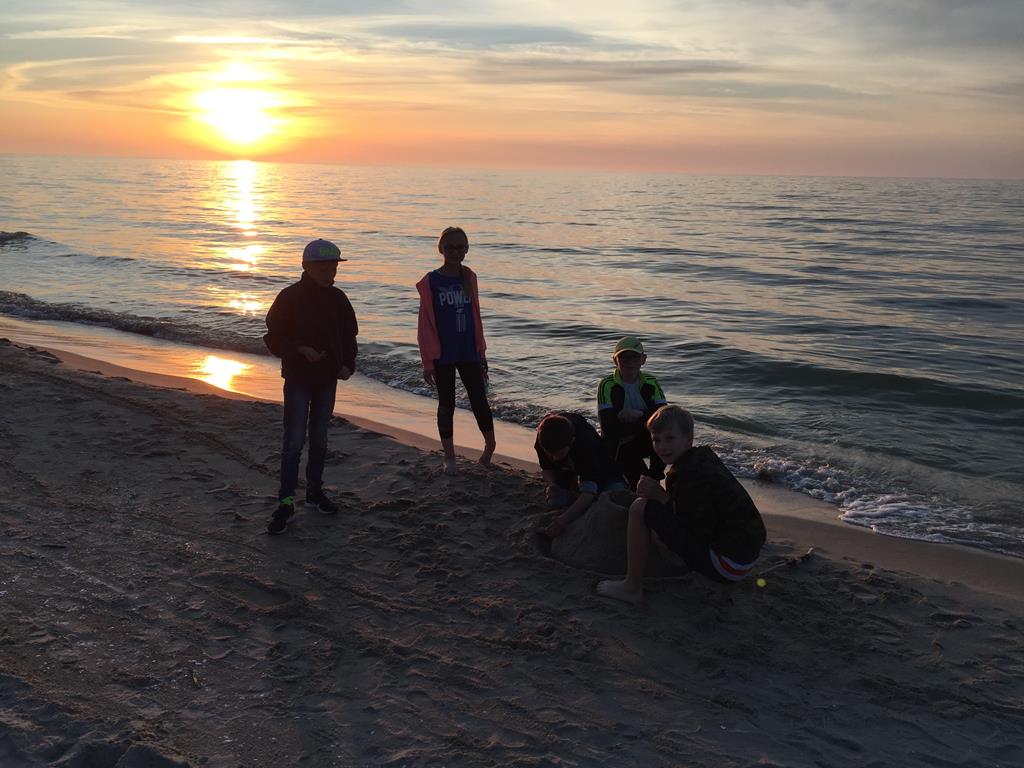 Ostatniego dnia, zaraz po śniadaniu, wyruszyliśmy na plażę, aby wykorzystać w praktyce wiedzę, którą zdobyliśmy poprzedniego dnia na lekcji o bursztynach. Poszukiwaniom nie było końca. Niestety nadszedł też czas pożegnać morze. Nikt nie chciał wracać do domu. Po obiedzie wyruszyliśmy prosto do Goszczyna. Po godzinie 19 dotarliśmy zmęczeni, ale szczęśliwi.