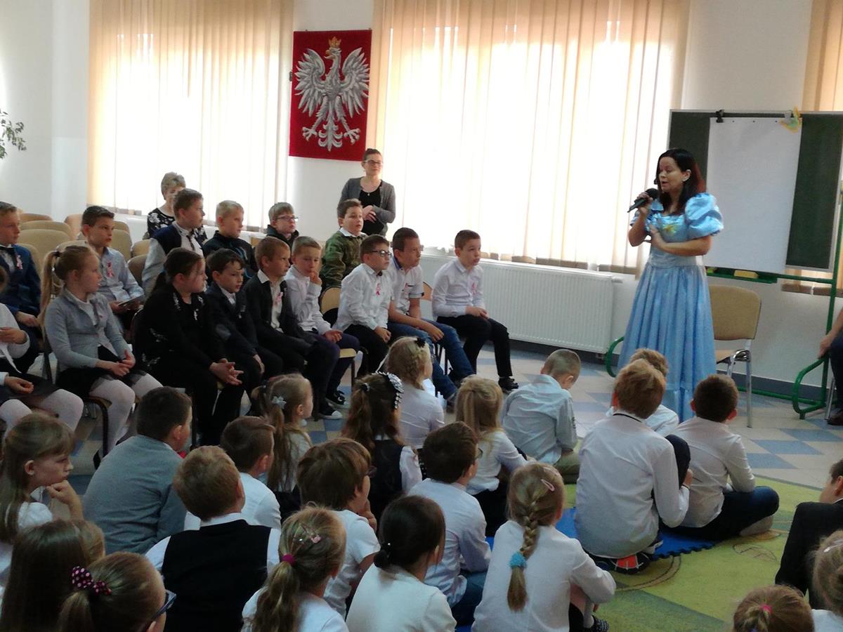 W poniedziałek 06.05.19 r. o godz. 9.00 na sali konferencyjnej uczniowie klas 1-3 uczestniczyli w spotkaniu literacko – muzycznym, na którym zagościli Edyta Zarębska- autorka i ilustratorka książek dla dzieci oraz jej mąż Roberta Zarębski - muzyk i kompozytor.
