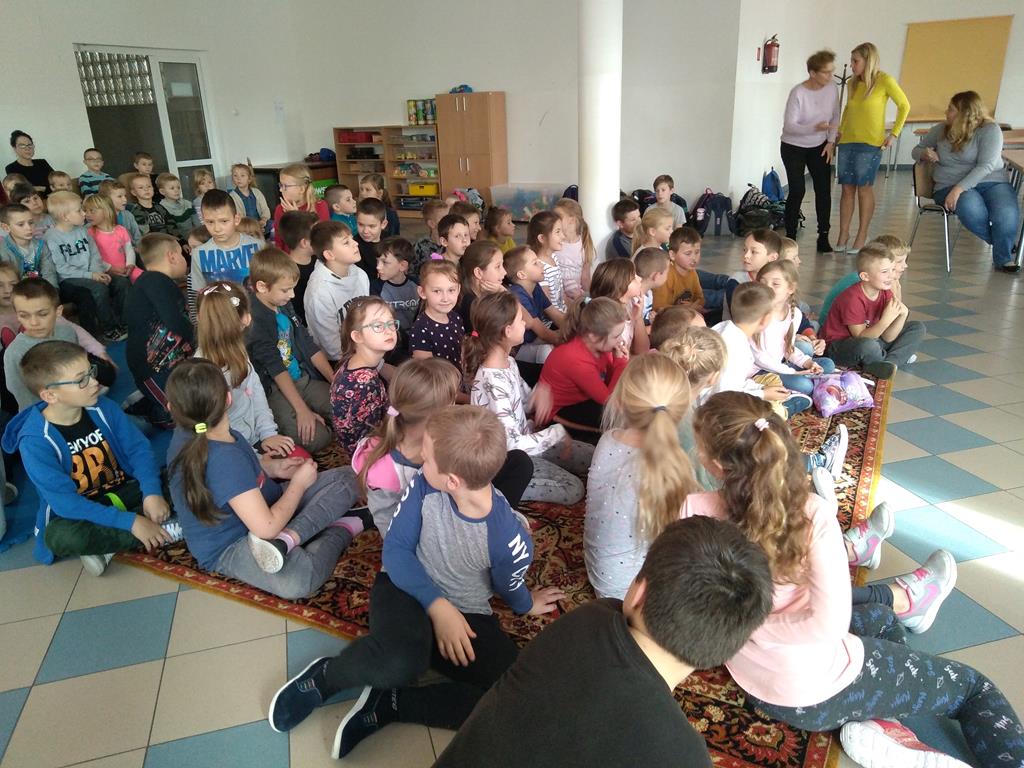 28 października świetlica szkolna zmieniła swoje oblicze… Jak się okazało, ławki szkolne zamieniły się w łóżko dla chorej babci, a okna zostały przysłonięte ciemnym, gęstym lasem… Uczniowie klas O-3 mieli możliwość obejrzenia krótkiego spektaklu teatralnego pt. „Czerwony Kapturek” przygotowanego przez uczestników kółka czytelniczego. W rolę głównej bohaterki wcieliła się Weronika Banaszewska, wilka – Inga Pietrusińska, babcię zagrała Marta Kociszewska, rodziców – Oliwia Markiewicz oraz Jakub Konarzewski, rolę leśniczego odegrała Lena Zielińska, drzewo – Julia Grzegorzewska. Narratorem została Wiktoria Metelska. W organizacji przedstawienia pomogli nam także członkowie Samorządu Uczniowskiego.