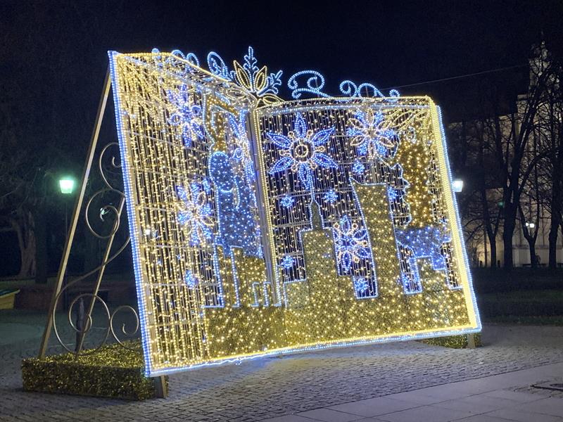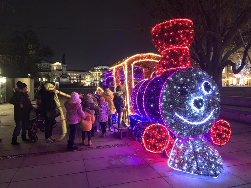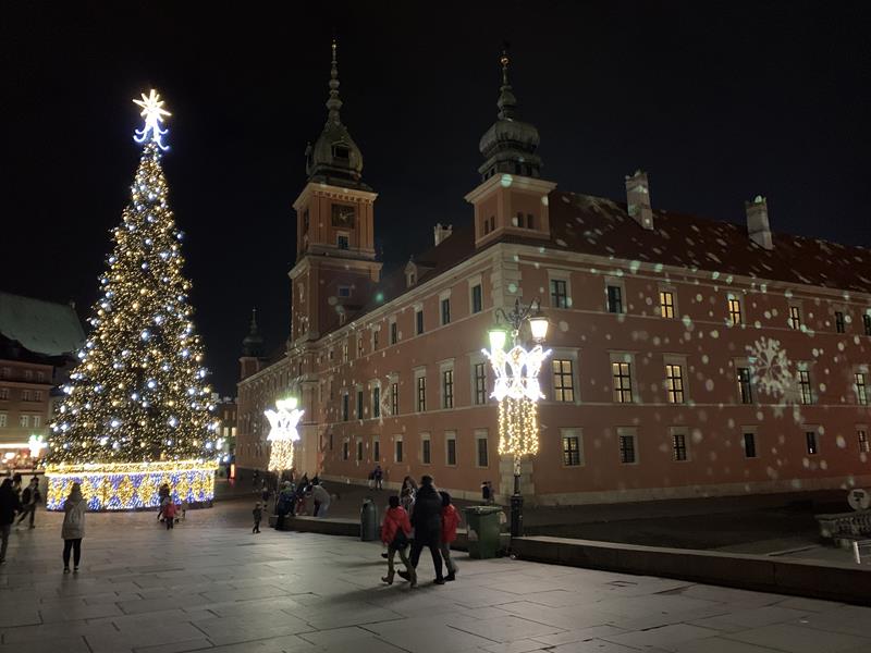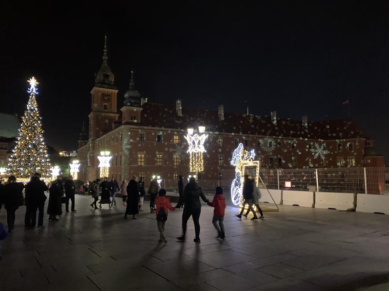 Ostatnim punktem wyjazdu był spacer po Nowym Świecie, Krakowskim Przedmieściu i Placu Zamkowym. Dzieci z zachwytem oglądały wspaniałe iluminacje świetlne, gwiazdy, choinki a nawet miały okazję zrobić sobie zdjęcie ze świętym Mikołajem w wspaniałej świątecznej scenerii. W trakcie spaceru odwiedziliśmy Grób Nieznanego Żołnierza a także byliśmy pod Pałacem Prezydenckim. Nasz spacer zakończył się na Placu Zamkowym gdzie podziwialiśmy przepięknie oświetlony Zamek Królewski i wspaniałą choinkę. Wszystkie dzieci stwierdziły że Warszawa w świątecznej scenerii wygląda przepięknie.