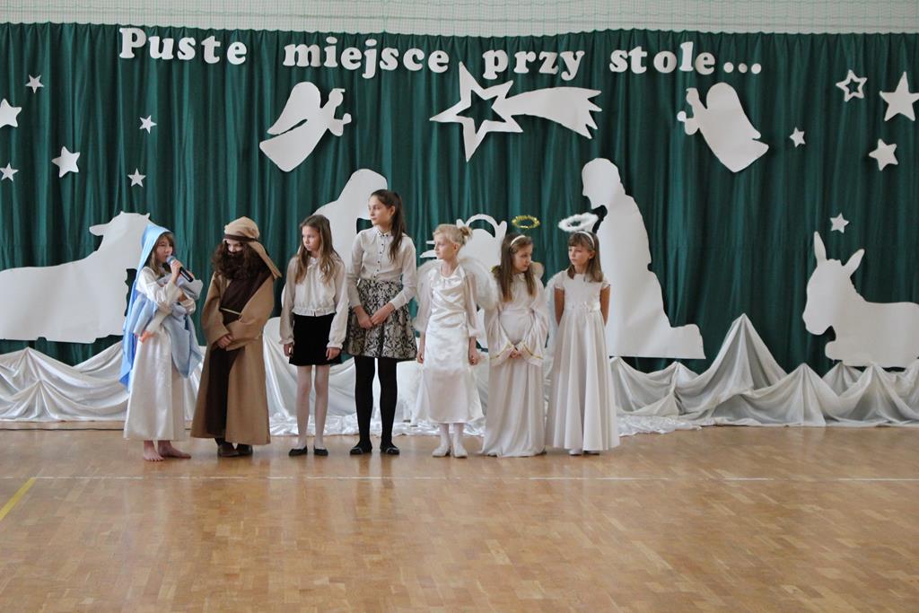 W świąteczną atmosferę wprowadzili nas uczniowie klasy 4 i 5, którzy wraz z chórem szkolnym przygotowali przedstawienie jasełkowe. Zaprezentowali je 20 grudnia, przypominając w ten sposób wydarzenia sprzed ponad dwóch tysięcy lat, kiedy to w Betlejem narodziło się Boże Dzieciątko. Uroku inscenizacji dodały kolędy, które napełniły wszystkich świąteczną radością i sprawiły, że poczuliśmy magię zbliżających się świąt.