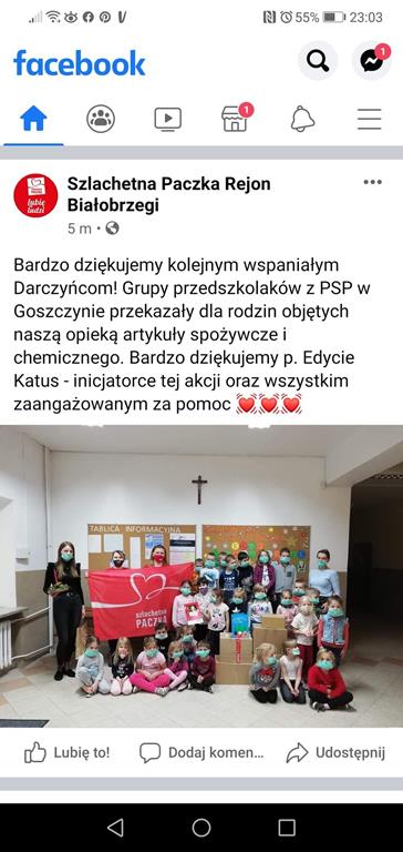 Grudzień to czas, w którym zaczynamy przygotowywać się do Świąt Bożego Narodzenia, mamy czas na przemyślenia, jak również jest to dobry moment na pomoc innym ludziom. Z początkiem tego miesiąca w naszej szkole wychowawczyni klasy 0b zorganizowała zbiórkę słodyczy, przyborów szkolnych, zabawek oraz chemii przeznaczonej dla dzieci. W akcję chętnie zaangażowały się obydwie klasy 0. Dzięki wspólnym działaniom udało się zebrać liczną ilość produktów która 10.12.2020r. została przekazana wolontariuszom “Szlachetnej Paczki “, a Ci przekażą zebrane dary dzieciom, z rodzin które znalazły się w trudnej sytuacji życiowej. Klasa 0b wraz z wychowawcą przygotowała również kartkę świąteczną ze specjalnymi życzeniami dla jednej z potrzebujących rodzin. Tymi działaniami nasza szkoła wzięła udział w akcji organizowanej przez MEN “Razem na Święta”, której celem jest zachęcanie uczniów do bezinteresownego niesienia pomocy innym. Mamy nadzieję, że tym drobnym, ale wspólnym gestem sprawiliśmy radość dzieciom w tym szczególnym czasie jakim jest okres przedświąteczny. #RazemNaŚwięta #SzlachetnaPaczka