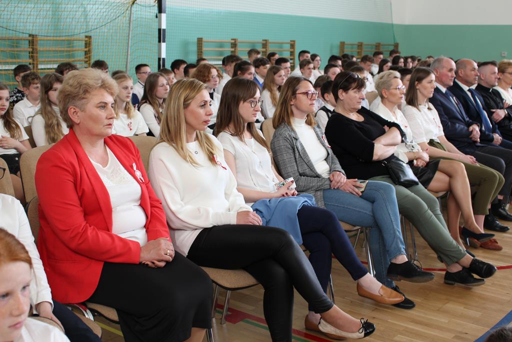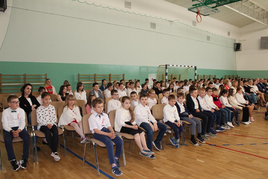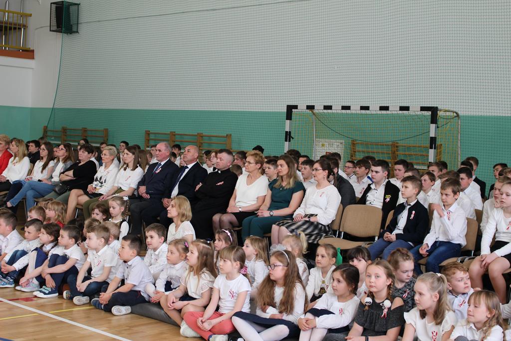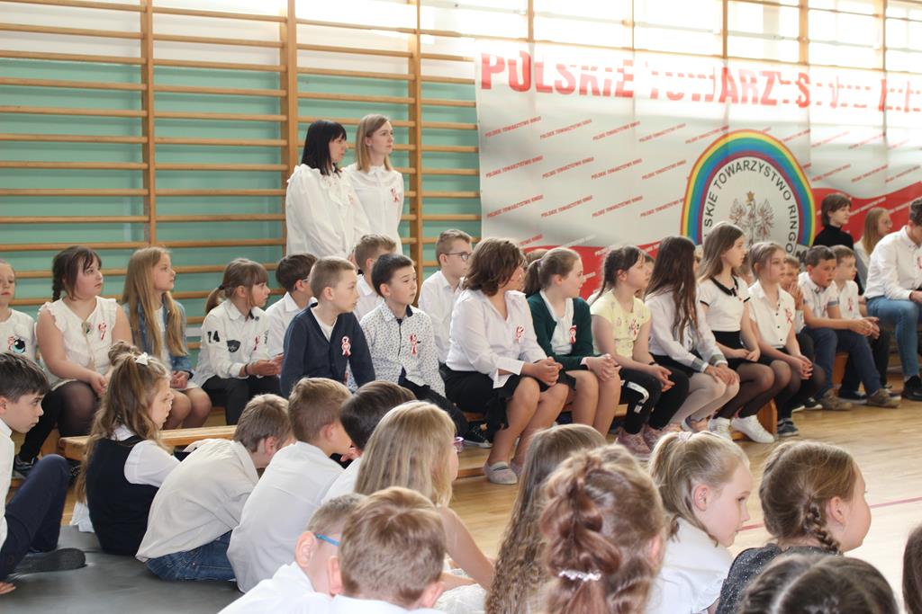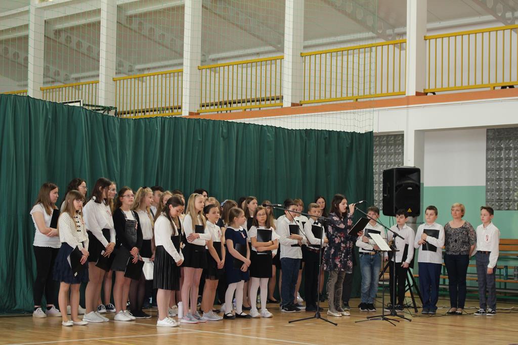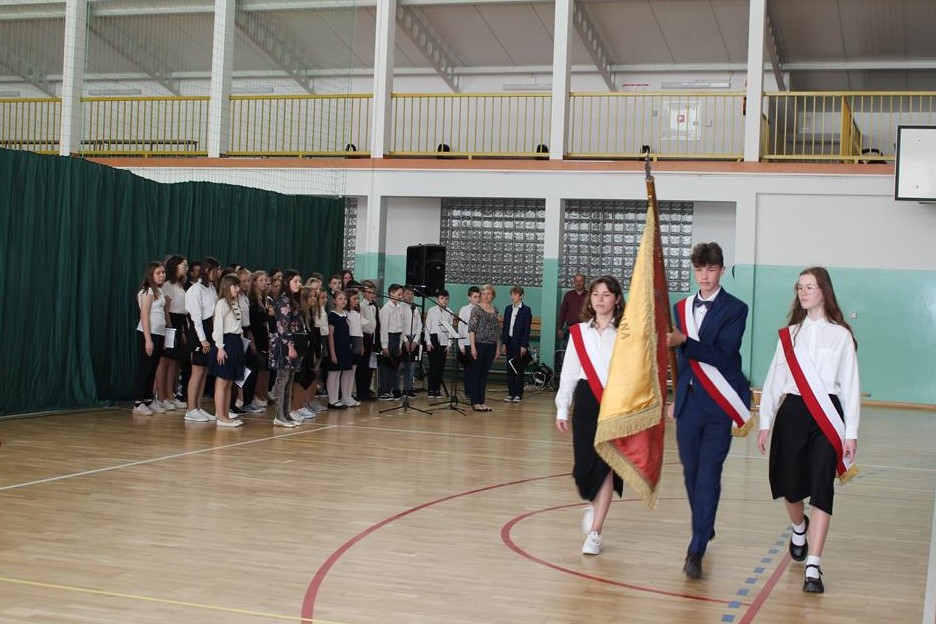 W środę, 04.05.2022 roku w naszej szkole obchodziliśmy rocznicę uchwalenia Konstytucji 3 Maja. Apel z okazji Święta Konstytucji 3 Maja jest wpisany co roku w kalendarz uroczystości naszej szkoły. Jest to wspaniała okazja, by uzmysłowić wszystkim, jak ważną rolę i znaczenie mają słowa: Wolność, Naród i Ojczyzna. By podkreślić patriotyczny charakter uroczystości, wszyscy zebrani przybyli na halę w strojach galowych z przypiętymi do piersi biało-czerwonymi kotylionami. Po uroczystym wprowadzeniu pocztu sztandarowego, cała społeczność Publicznej Szkoły Podstawowej w Goszczynie odśpiewała hymn państwowy. Następnie uczniowie klasy 8a i chór szkolny zaprezentowali część artystyczną. W wystąpieniach, wierszach i piosenkach opowiedzieli zebranym o doniosłym i ważnym dla Polski wydarzeniu uchwalenia Konstytucji 3 Maja. Ten apel był dla całej społeczności szkolnej krótką lekcją historii i skłonił wszystkich do refleksji oraz zadumy.