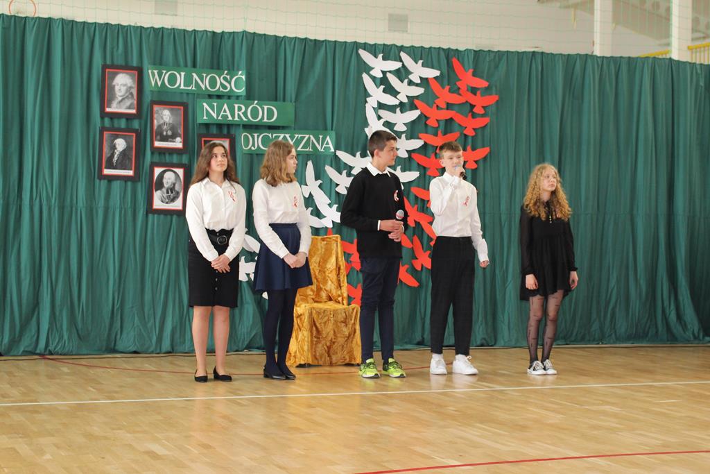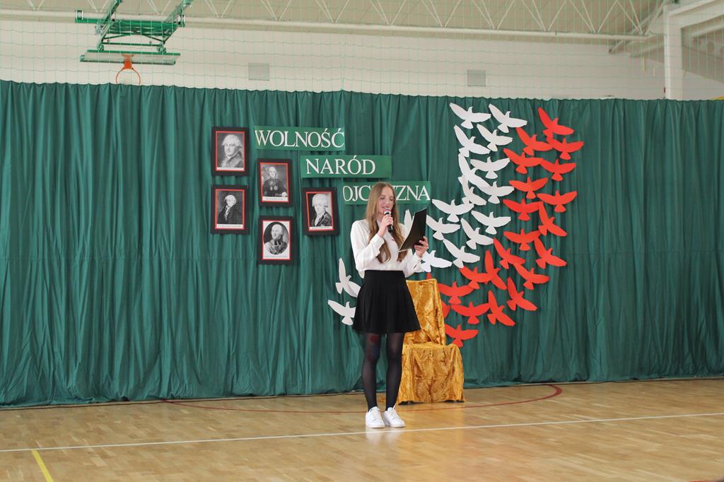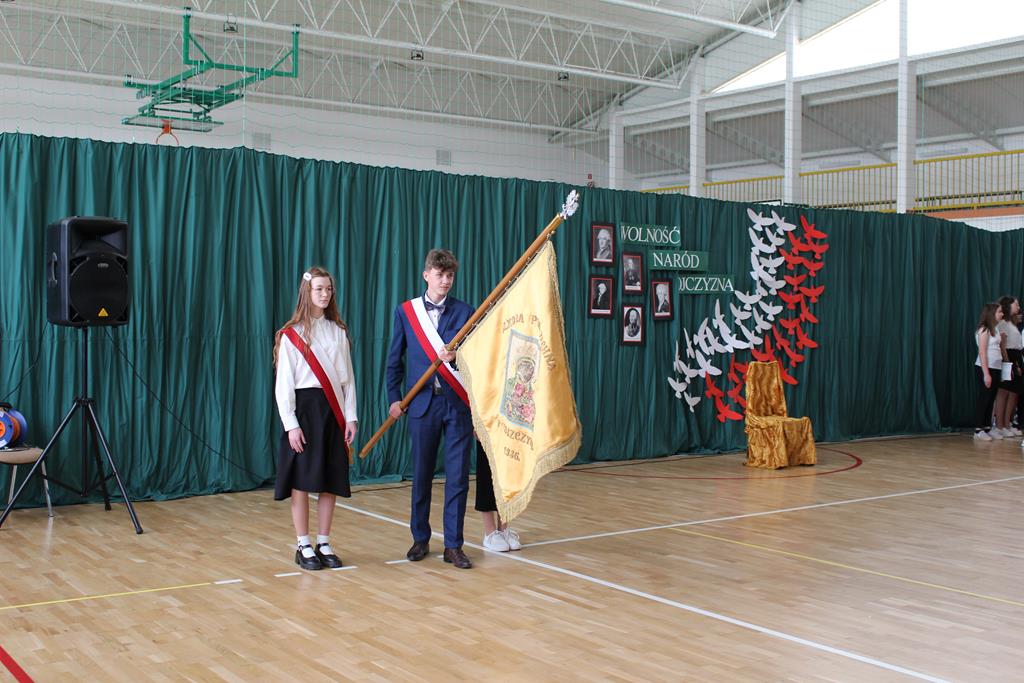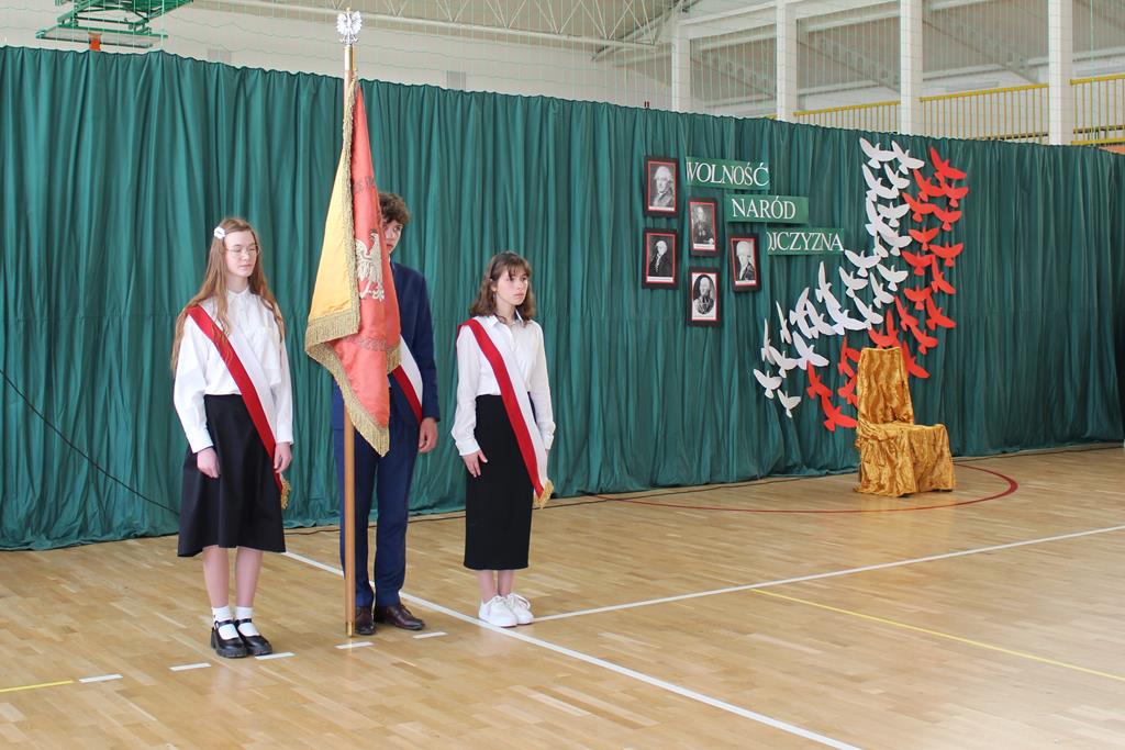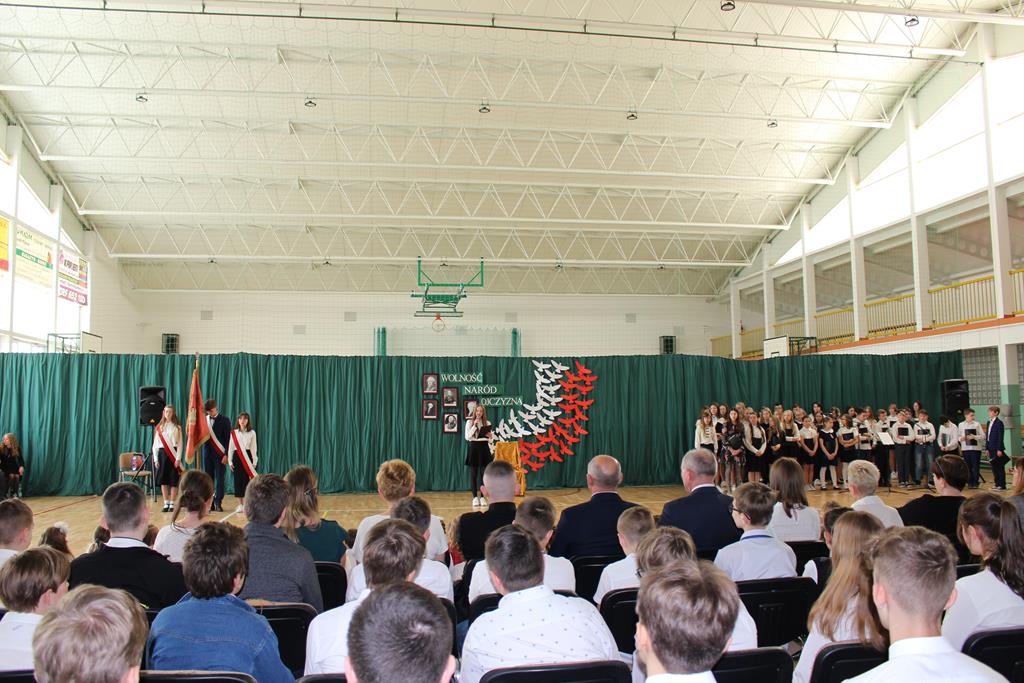 W środę, 04.05.2022 roku w naszej szkole obchodziliśmy rocznicę uchwalenia Konstytucji 3 Maja. Apel z okazji Święta Konstytucji 3 Maja jest wpisany co roku w kalendarz uroczystości naszej szkoły. Jest to wspaniała okazja, by uzmysłowić wszystkim, jak ważną rolę i znaczenie mają słowa: Wolność, Naród i Ojczyzna. By podkreślić patriotyczny charakter uroczystości, wszyscy zebrani przybyli na halę w strojach galowych z przypiętymi do piersi biało-czerwonymi kotylionami. Po uroczystym wprowadzeniu pocztu sztandarowego, cała społeczność Publicznej Szkoły Podstawowej w Goszczynie odśpiewała hymn państwowy. Następnie uczniowie klasy 8a i chór szkolny zaprezentowali część artystyczną. W wystąpieniach, wierszach i piosenkach opowiedzieli zebranym o doniosłym i ważnym dla Polski wydarzeniu uchwalenia Konstytucji 3 Maja. Ten apel był dla całej społeczności szkolnej krótką lekcją historii i skłonił wszystkich do refleksji oraz zadumy.