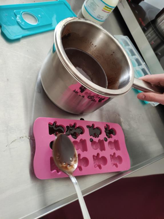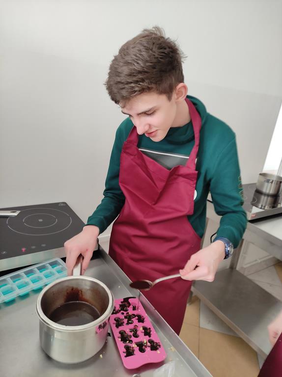Kolejne zajęcia w ramach innowacji pedagogicznej „Obserwuję, badam, eksperymentuję” polegały na produkcji „EKO-CZEKOLADY”. Do jej wytworzenia zostały użyte następujące surowce: cukier w postaci zdrowego miodu, tłuszcz kokosowy i kakao bogate w magnez. Podczas przygotowywania wykorzystany został sprzęt z pracowni kulinarnej, urządzonej i wyposażonej w ramach programu „LABORATORIA PRZYSZŁOŚCI”. Uczniowie w trakcie zajęć kształtowali i rozwijali swoje zdolności manualne, techniczne oraz dobrej organizacji i dbania o porządek na stanowisku pracy. W galerii zdjęć można zauważyć uśmiechy na twarzach uczniów oraz umiejętność współpracy w grupie. Było słodko, pysznie i zdrowo!