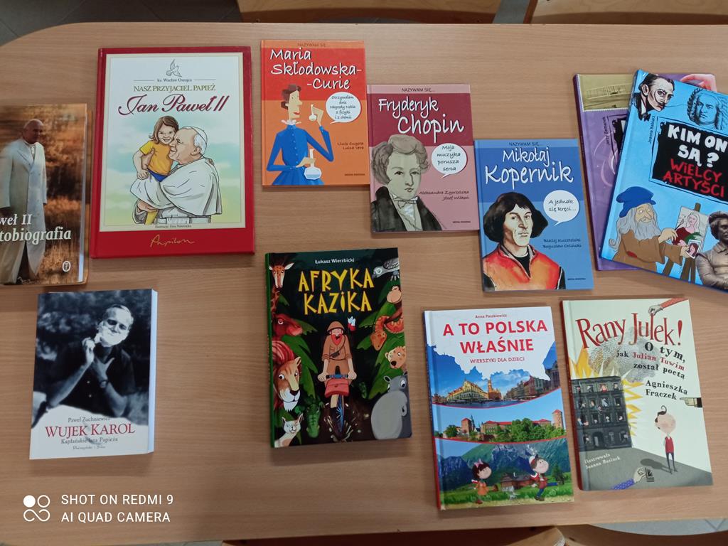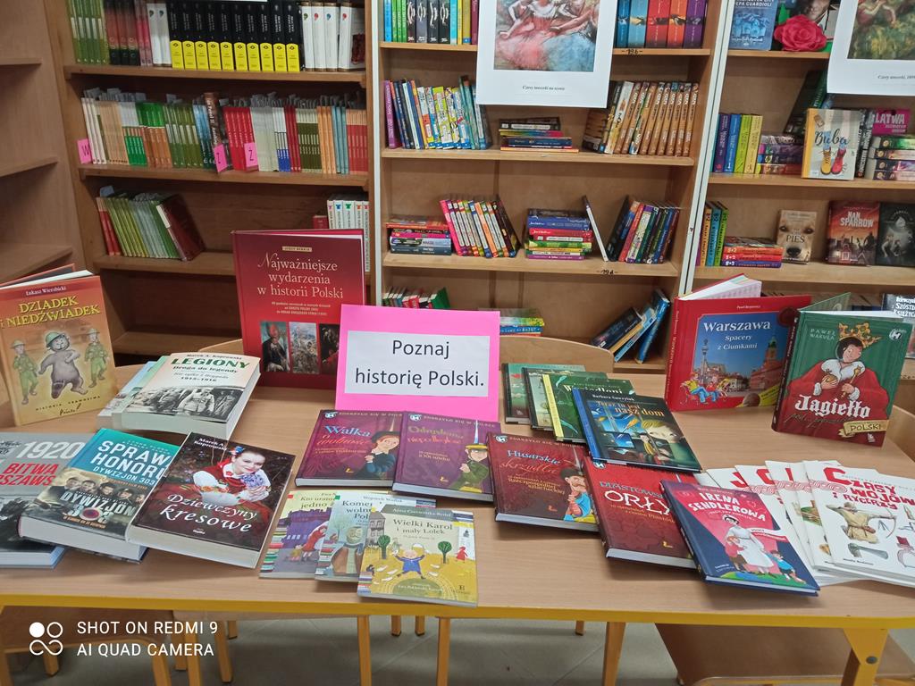 W bibliotece powstała także wystawa książek dotyczących historii naszej ojczyzny oraz opowiadających historie znanych Polaków. Jako pierwsi mogli obejrzeć wystawę uczniowie klasy III, którzy wysłuchali fragmentu książki "Wysiedleni" Doroty Combrzyńskiej-Nogali oraz wypożyczyli tytuły, które ich szczególnie zainteresowały.