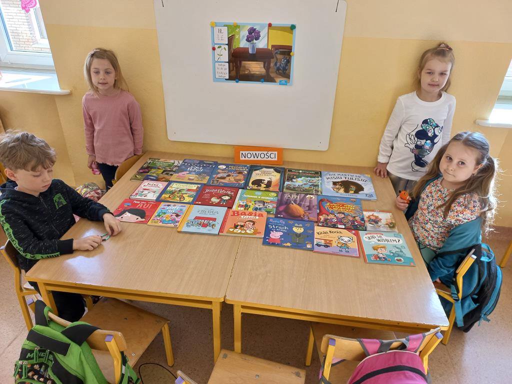 Z okazji trwającego właśnie Tygodnia Bibliotek nasi uczniowie mają okazję wziąć udział w kolejnych akcjach czytelniczych. W oddziałach zerowych powstały minibiblioteczki - uczniowie mogą w wolnych chwilach przeglądać najnowsze tytuły oraz wypożyczać i oddawać książki bezpośrednio u swojego wychowawcy. Przedszkolaki biorą także udział w akcji "Poczytaj mi, kolego" - starsi uczniowie systematycznie odwiedzają najmłodszych oraz czytają im wybrane bajki i baśnie.