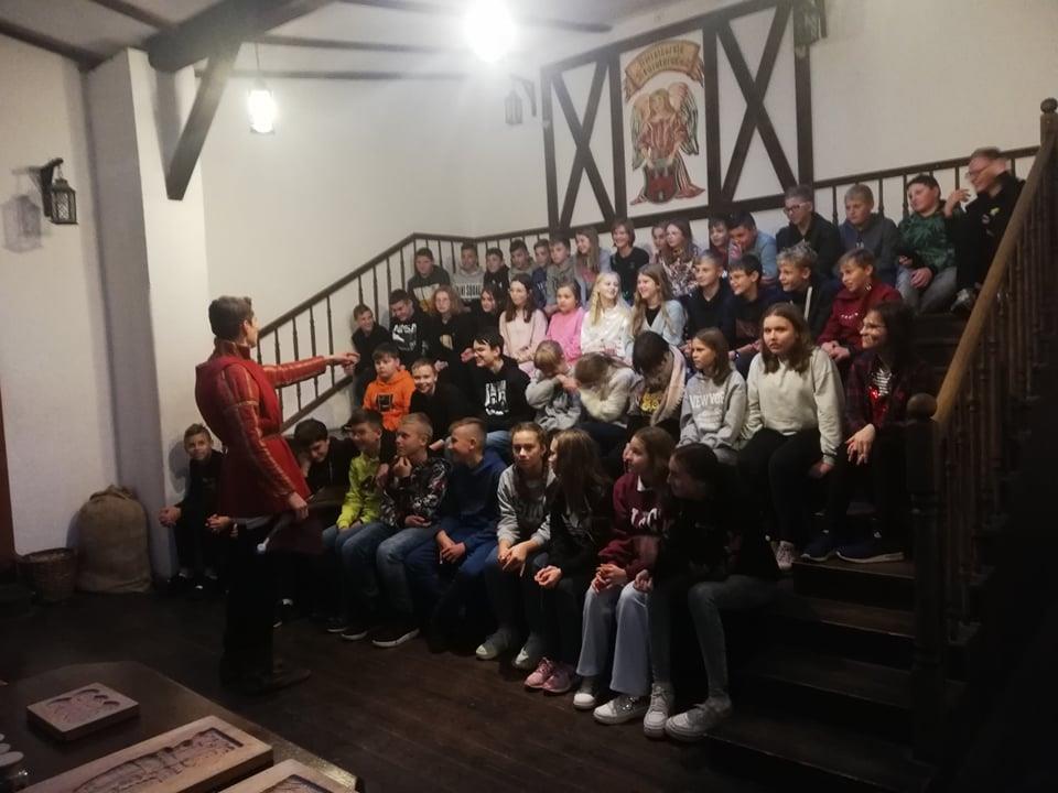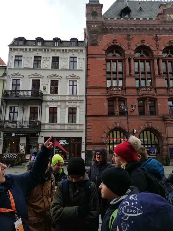 Wczesnym rankiem wyjechaliśmy do Torunia. Gdy dotarliśmy na miejsce, odwiedziliśmy Geodium. Wystawa prezentowana w tym miejscu poświęcona jest Ziemi jako planecie. Plastyczne instalacje pokazują, jak na przestrzeni dziejów zmienia się nasza planeta. W tym miejscu mieliśmy okazję samodzielnie poeksperymentować i to podobało się nam najbardziej. Później zwiedzaliśmy Toruń razem z przewodnikiem. Zobaczyliśmy Dom Mikołaja Kopernika, Krzywą Wieżę i kilka innych pomników, zabytków, które warto zobaczyć w tym mieście. W trakcie spaceru uliczkami Torunia wysłuchaliśmy ciekawych historii na temat zabytków.