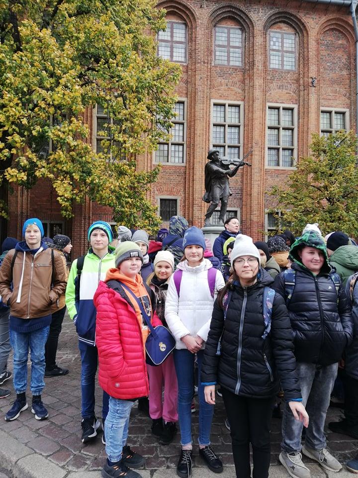 Wczesnym rankiem wyjechaliśmy do Torunia. Gdy dotarliśmy na miejsce, odwiedziliśmy Geodium. Wystawa prezentowana w tym miejscu poświęcona jest Ziemi jako planecie. Plastyczne instalacje pokazują, jak na przestrzeni dziejów zmienia się nasza planeta. W tym miejscu mieliśmy okazję samodzielnie poeksperymentować i to podobało się nam najbardziej. Później zwiedzaliśmy Toruń razem z przewodnikiem. Zobaczyliśmy Dom Mikołaja Kopernika, Krzywą Wieżę i kilka innych pomników, zabytków, które warto zobaczyć w tym mieście. W trakcie spaceru uliczkami Torunia wysłuchaliśmy ciekawych historii na temat zabytków.