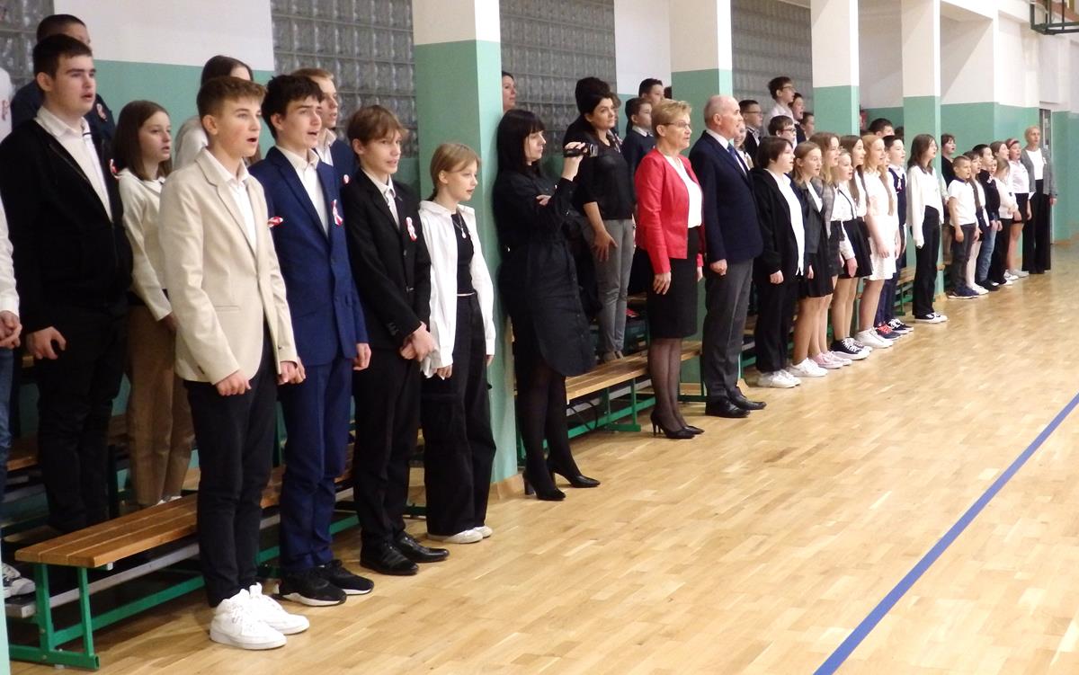 Apel rozpoczął się od wprowadzenia sztandaru szkoły przez poczet sztandarowy oraz odśpiewania 4-zwrotkowego hymnu Polski „Mazurka Dąbrowskiego”.