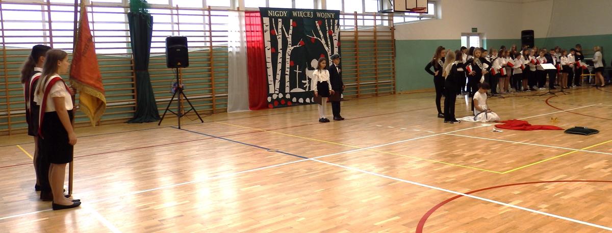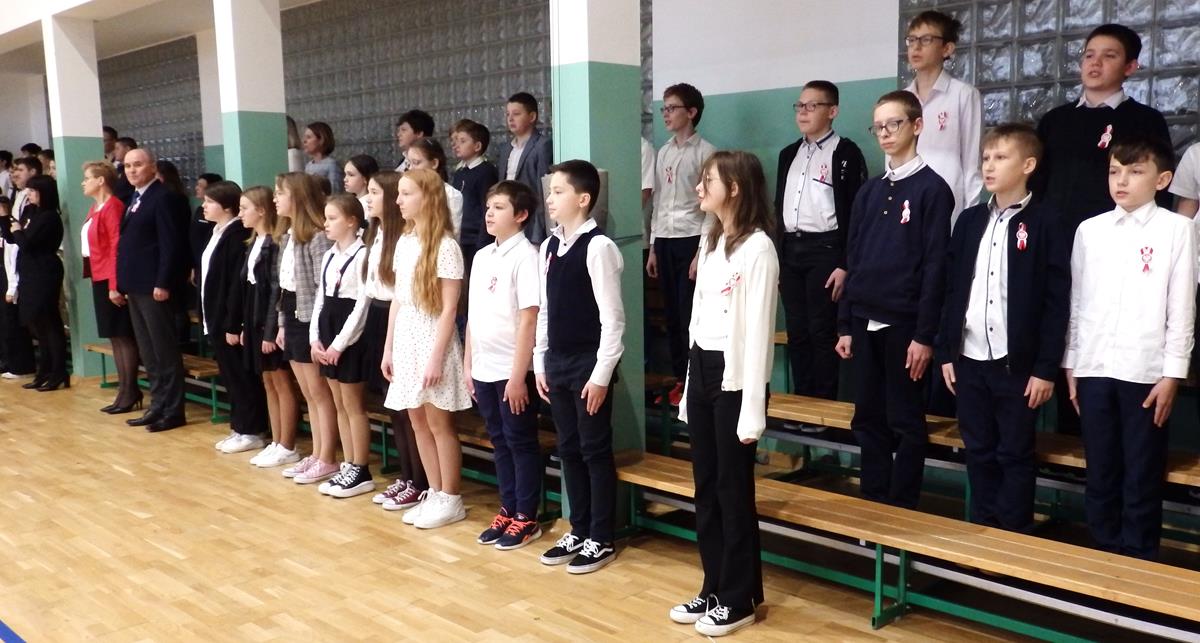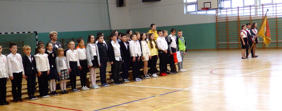 Wszyscy uczniowie i nauczyciele wzięli udział w uroczystym apelu. Główny ciężar przygotowania i prowadzenia uroczystości wzięli na siebie uczniowie z klasy 5B pod kierunkiem nauczycieli: p. Moniki Piekarskiej, p. Karoliny Grzechnik i p. Agaty Gajewskiej.