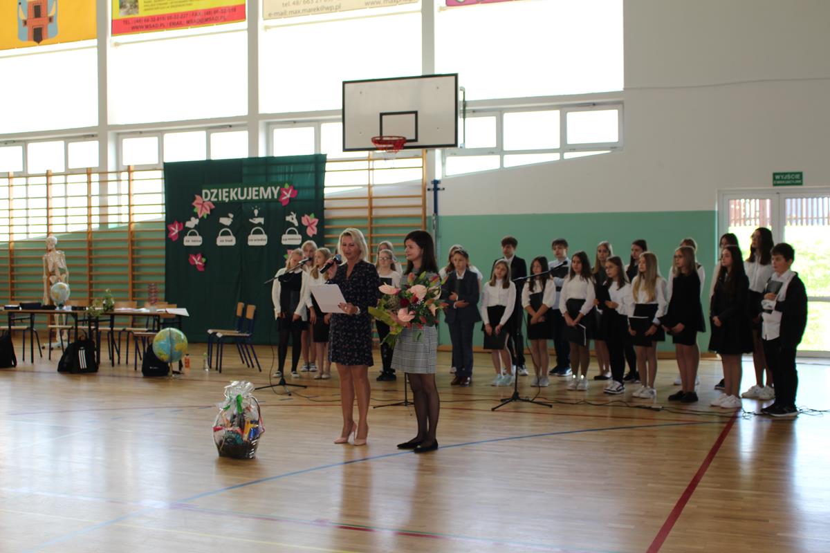 17 października społeczność naszej szkoły uczestniczyła w uroczystym apelu z okazji Dnia Edukacji Narodowej, zorganizowanym przez Samorząd Szkolny i jego opiekunów. W programie artystycznym wystąpili uczniowie klas 8A i 8B, oraz chór szkolny, wśród którego wspaniale zaprezentowały się trzy solistki. Ósmoklasiści włożyli wiele trudu w to, aby uczynić ten dzień wyjątkowo uroczystym. Nie zabrakło wierszy wyrażających wdzięczność za trud włożony przez nauczycieli w swoją pracę, jak i zabawnych żartów o szkole, które wywołały uśmiech na twarzach zgromadzonej publiczności. Po części artystycznej głos zabrał Pan Dyrektor – złożył życzenia wszystkim pracownikom szkoły, oraz nagrodził nauczycieli za wyróżniającą pracę w poprzednim roku szkolnym. Następnie życzenia popłynęły od Rady Rodziców. Samorząd Szkolny przygotował dla wszystkich pracowników naszej szkoły drobne upominki w postaci aromatycznych herbatek, które z pewnością umilą jesienne dni.