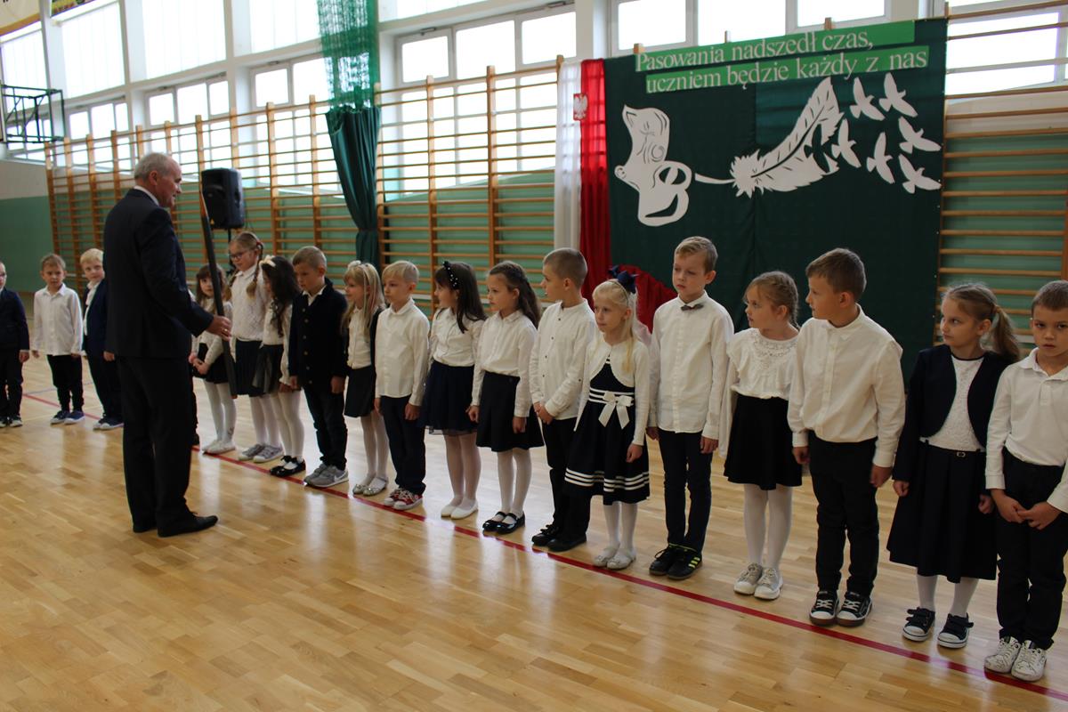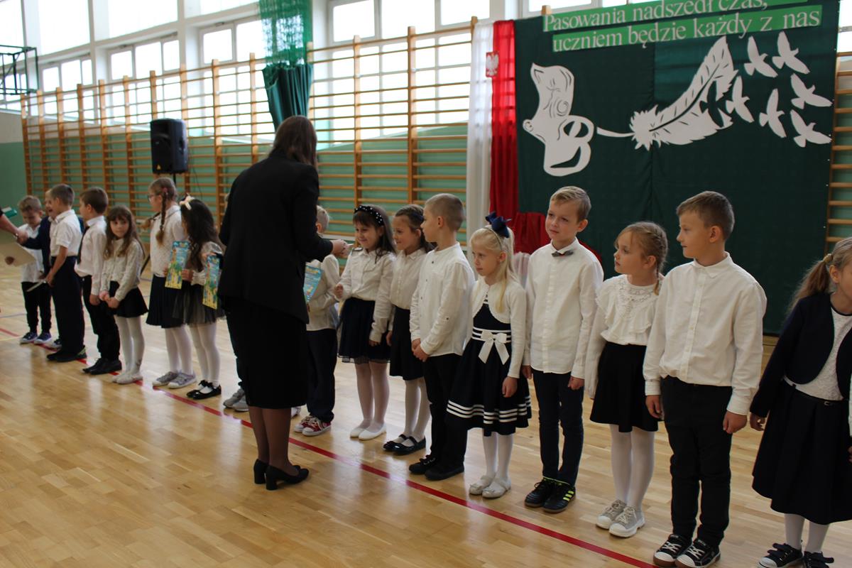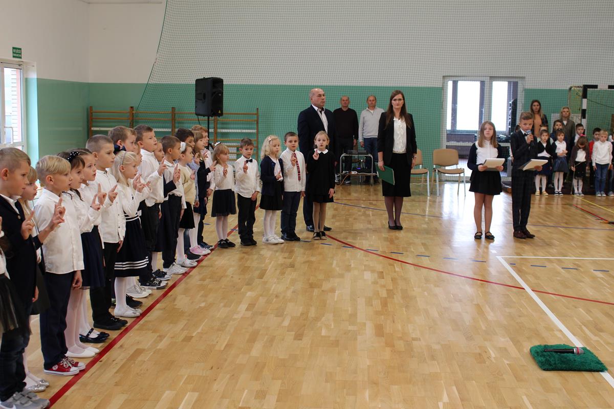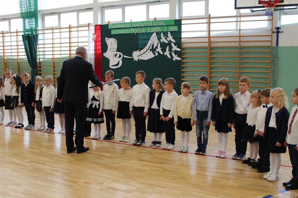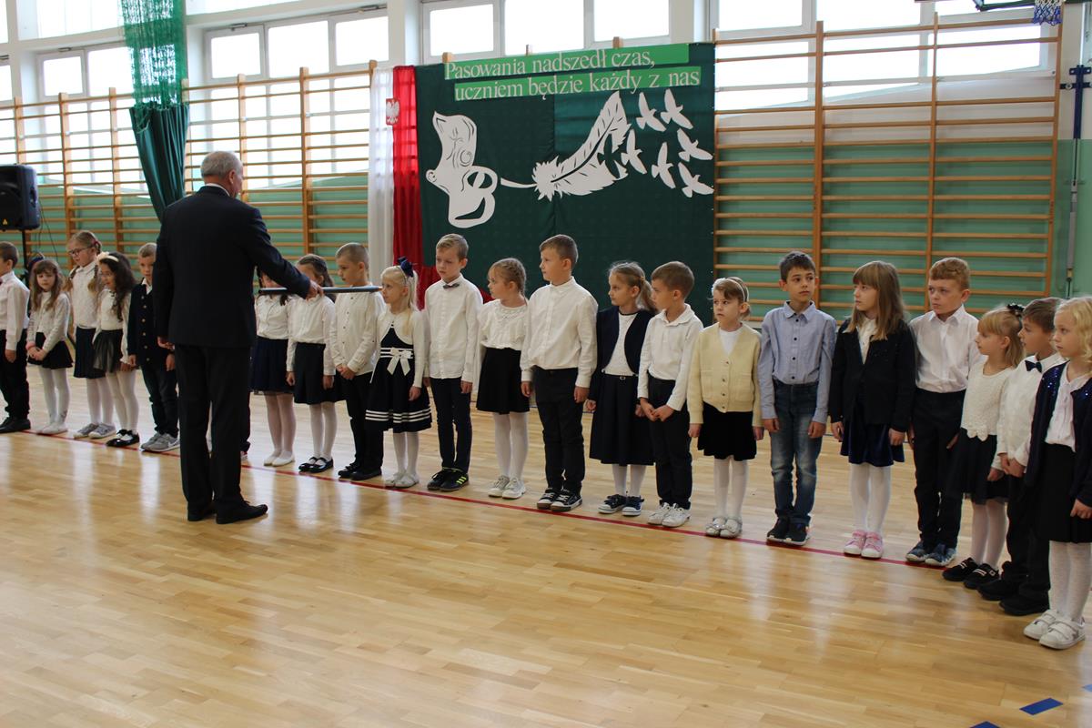 Ślubowanie uczniów klas pierwszych to od lat niezwykłe wydarzenie w naszej szkole. W tym roku odbyło się ono 3 października. Był to dzień długo wyczekiwany przez dzieci. Podczas tej uroczystości, w niezwykle podniosłej atmosferze, przed Dyrekcją Szkoły, nauczycielami, wychowawcami i rodzicami uczniowie klasy 1a i 1b złożyli uroczystą przysięgę uczniowską, podczas której ślubowali być dobrymi Polakami, godnie reprezentować swoją szkołę oraz swym zachowaniem i nauką sprawiać radość rodzicom i nauczycielom. Po złożeniu ślubowania Dyrektor Szkoły dokonał symbolicznego pasowania na ucznia. Od tej chwili stali się oni nowymi członkami naszej wielkiej szkolnej rodziny!