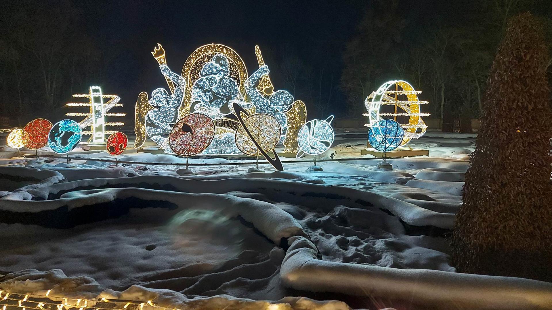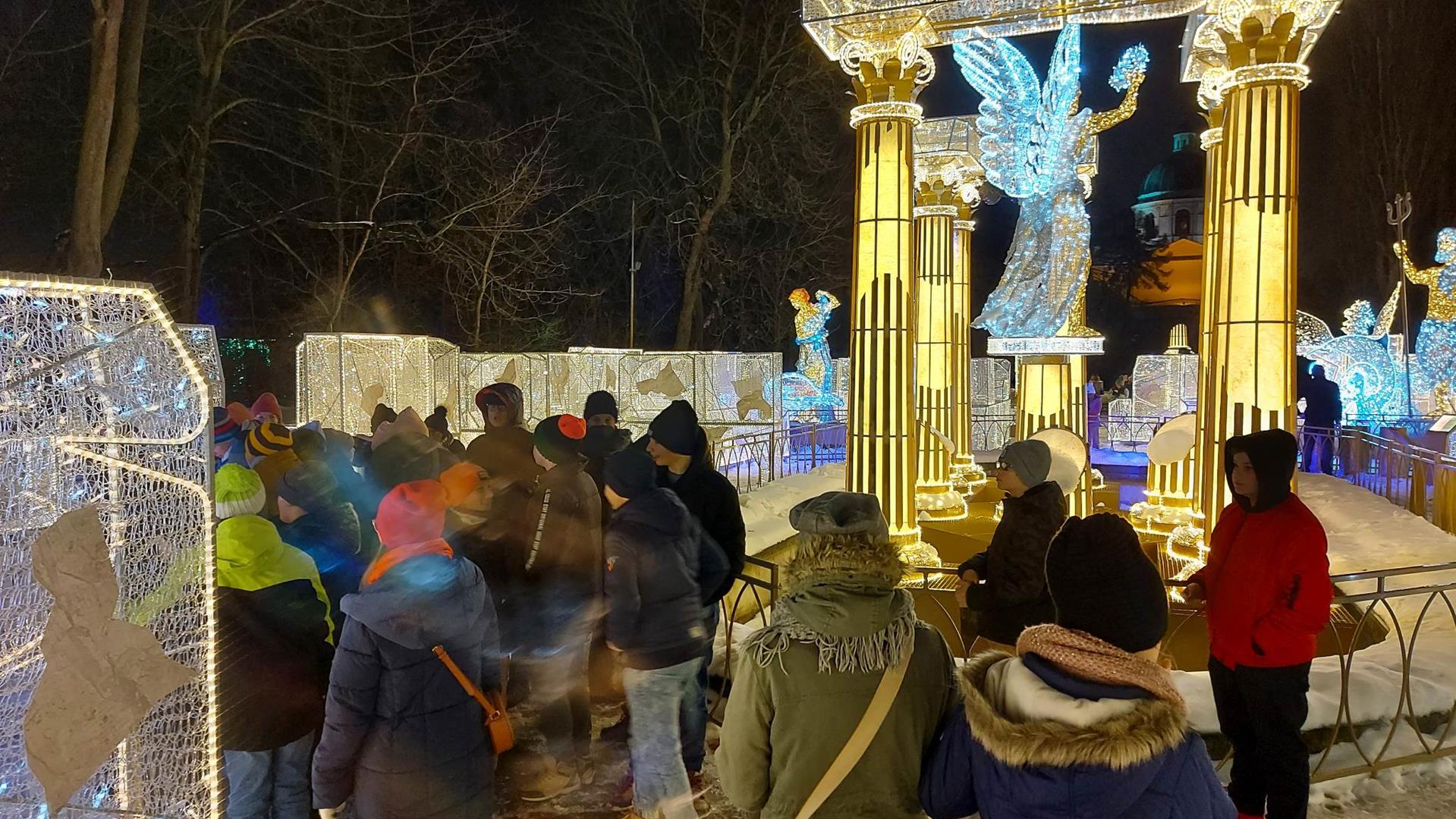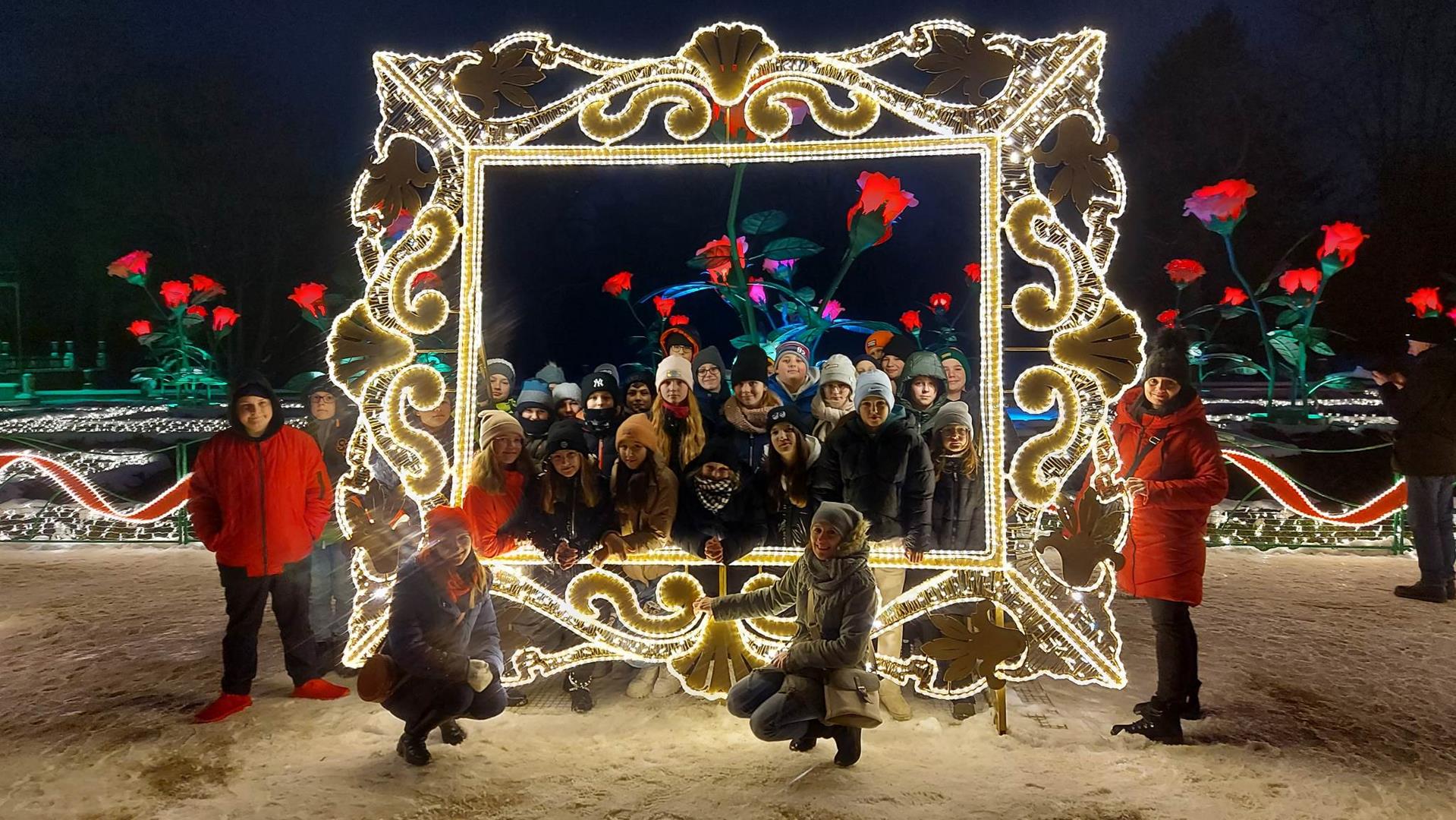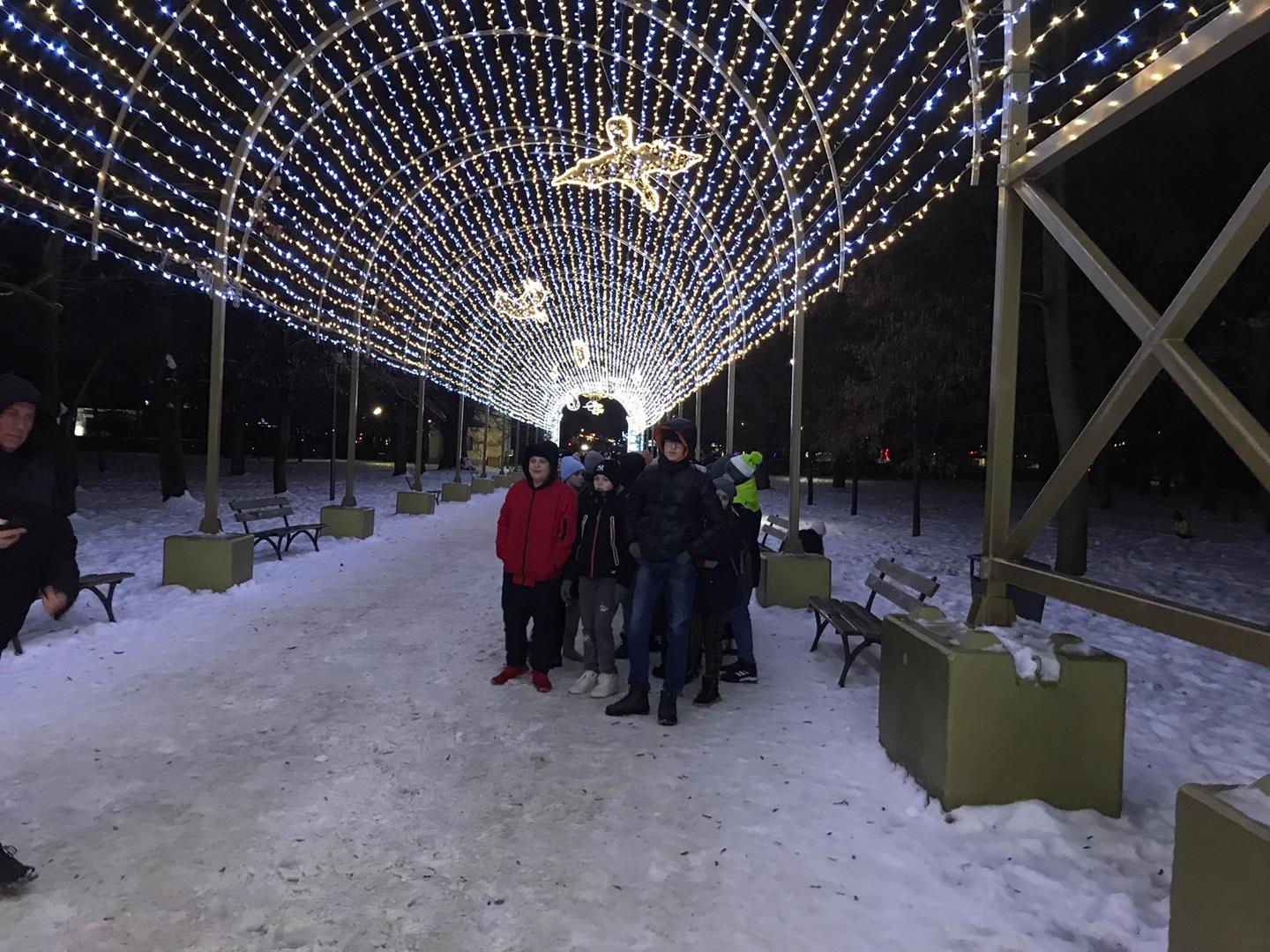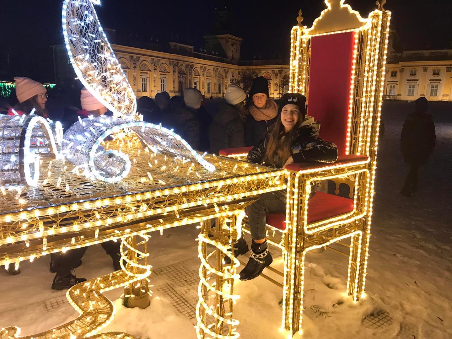 Ostatnim punktem programu był Królewski Ogród Świateł w Wilanowie. Po zmierzchu uczniowie mieli okazję podziwiać piękne iluminacje świetlne czy posłuchać fragmentów "Jeziora łabędziego", w rytm którego zapalały się światełka. Dowiedzieli się również wielu ciekawych informacji na temat króla Jana III Sobieskiego, jego żony - Marysieńki oraz na temat samego pałacu - okoliczności jego powstania, a także późniejszej rozbudowy. Panie przewodniczki zainteresowały uczniów wieloma ciekawostkami o życiu na dworze królewskim - spożywanych posiłkach, higienie osobistej dworzan czy karze, jaka spotkała pracownika zamku za zabicie ukochanego zwierzątka króla - wydry, zwanej Robakiem.