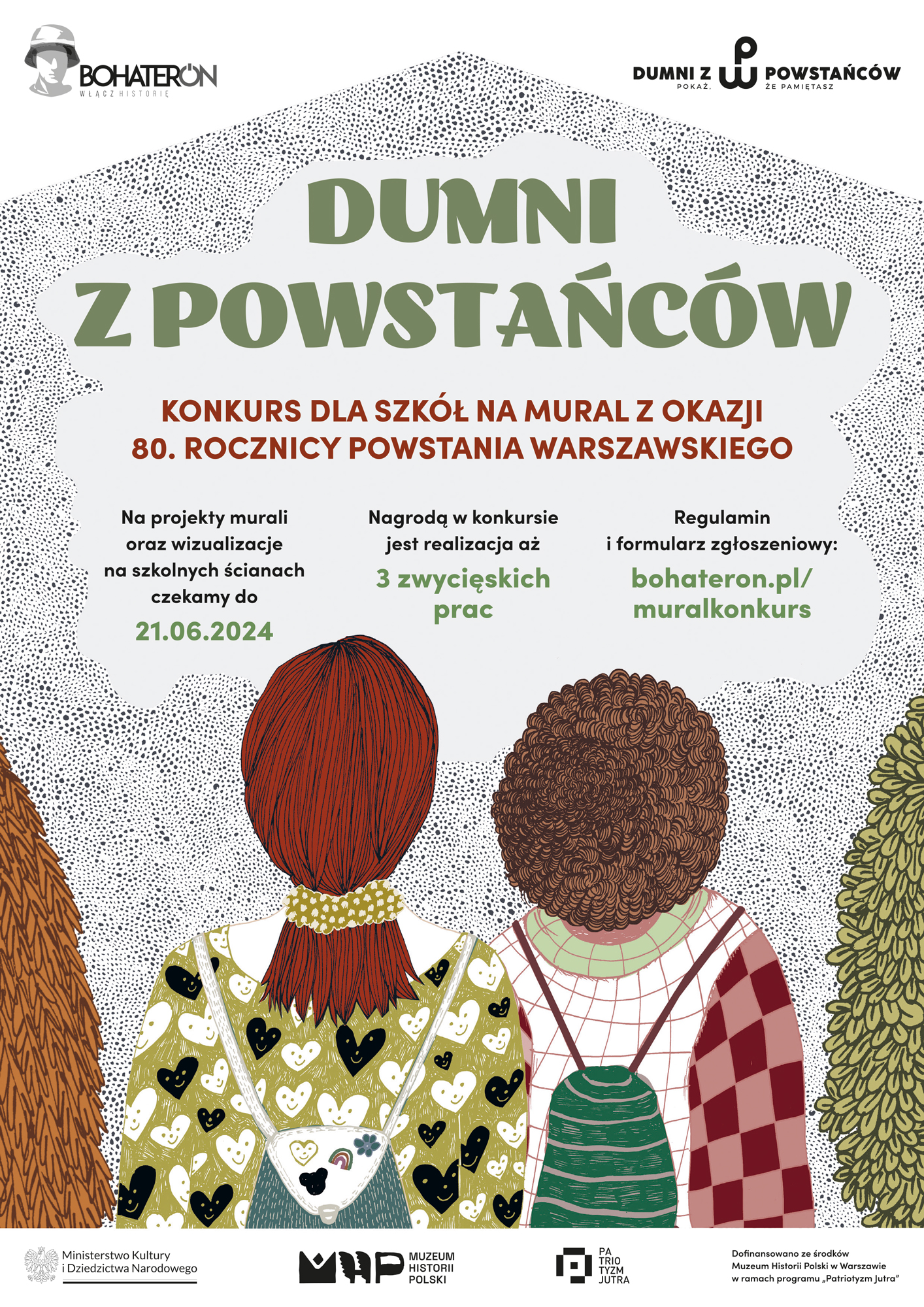 „Dumni z powstańców. Konkurs dla szkół na mural z okazji 80. rocznicy Powstania Warszawskiego”.