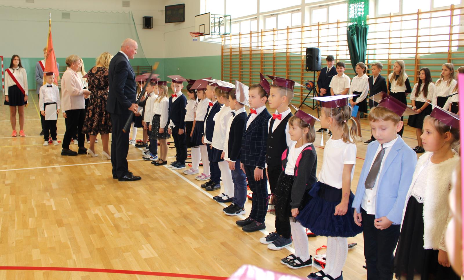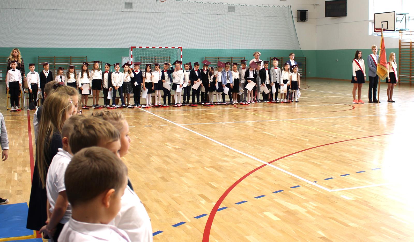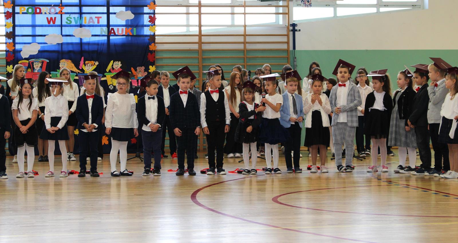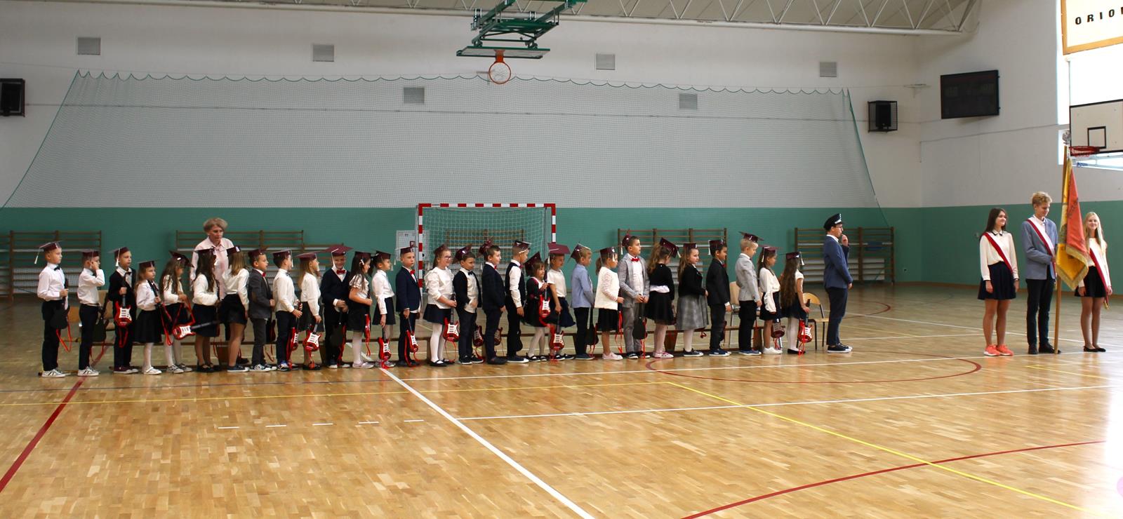 Tego dnia święto obchodzili również uczniowie klasy 1 SP. Rozpoczynając podróż w świat nauki zostali pasowani na ucznia szkoły podstawowej. W ten sposób pierwszoklasiści zostali oficjalnie włączeni do grona uczniów Szkoły Podstawowej w Goszczynie. Pierwszaki głośno i z przekonaniem przyrzekały być dobrymi i pilnymi uczniami oraz rzetelnie wypełniać swoje obowiązki, o czym przypominać im będą otrzymane pamiątkowe dyplomy.
