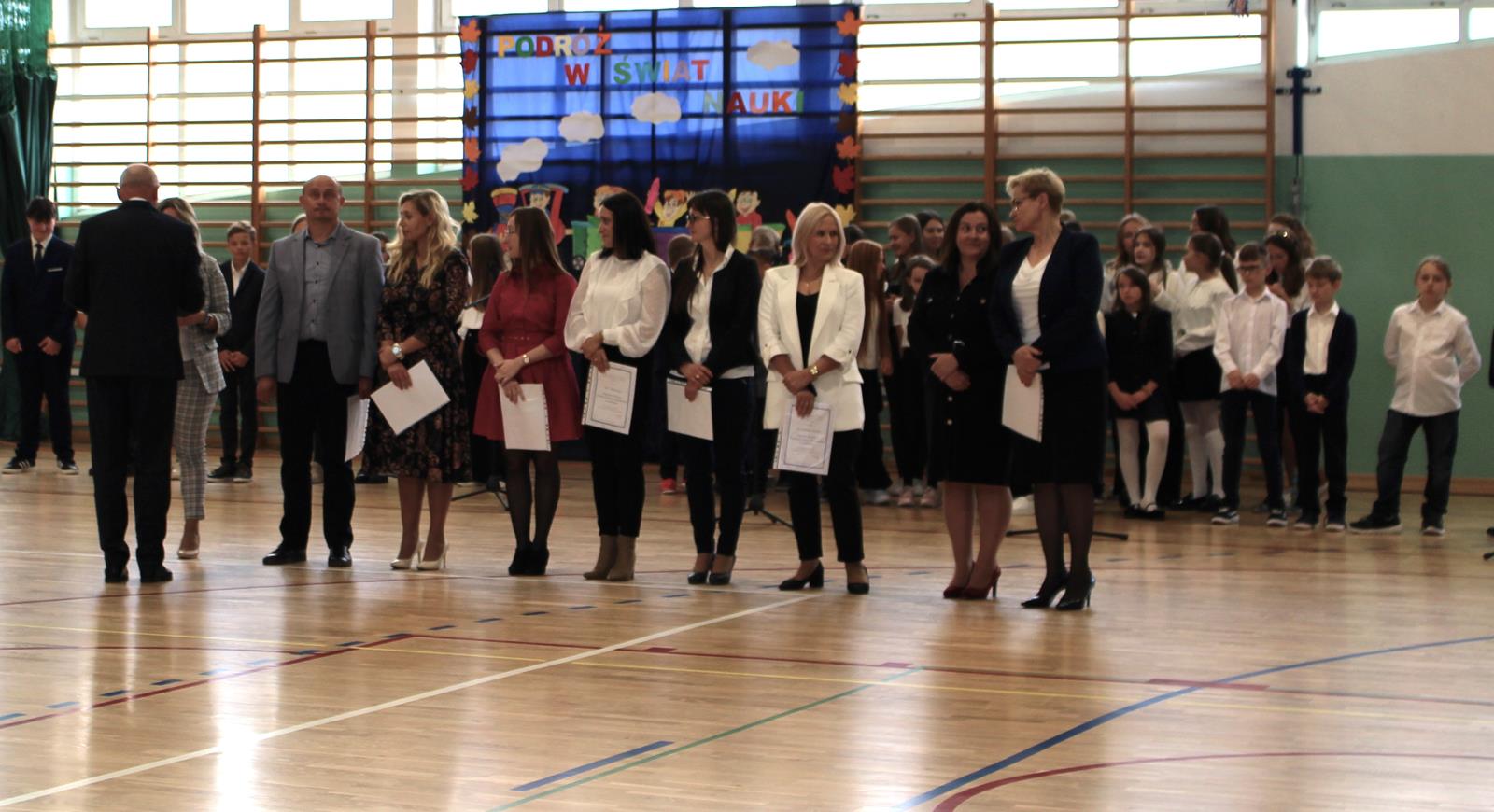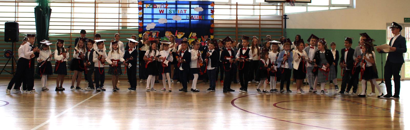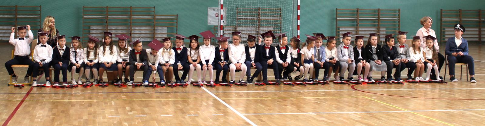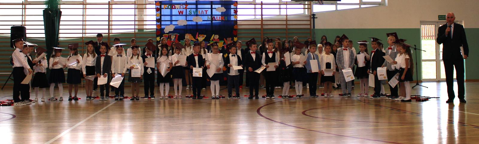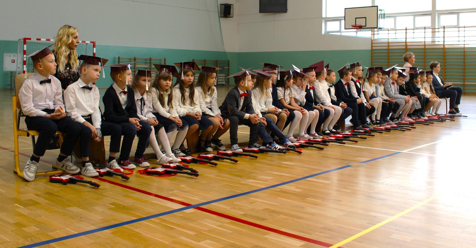 Tego dnia święto obchodzili również uczniowie klasy 1 SP. Rozpoczynając podróż w świat nauki zostali pasowani na ucznia szkoły podstawowej. W ten sposób pierwszoklasiści zostali oficjalnie włączeni do grona uczniów Szkoły Podstawowej w Goszczynie. Pierwszaki głośno i z przekonaniem przyrzekały być dobrymi i pilnymi uczniami oraz rzetelnie wypełniać swoje obowiązki, o czym przypominać im będą otrzymane pamiątkowe dyplomy.