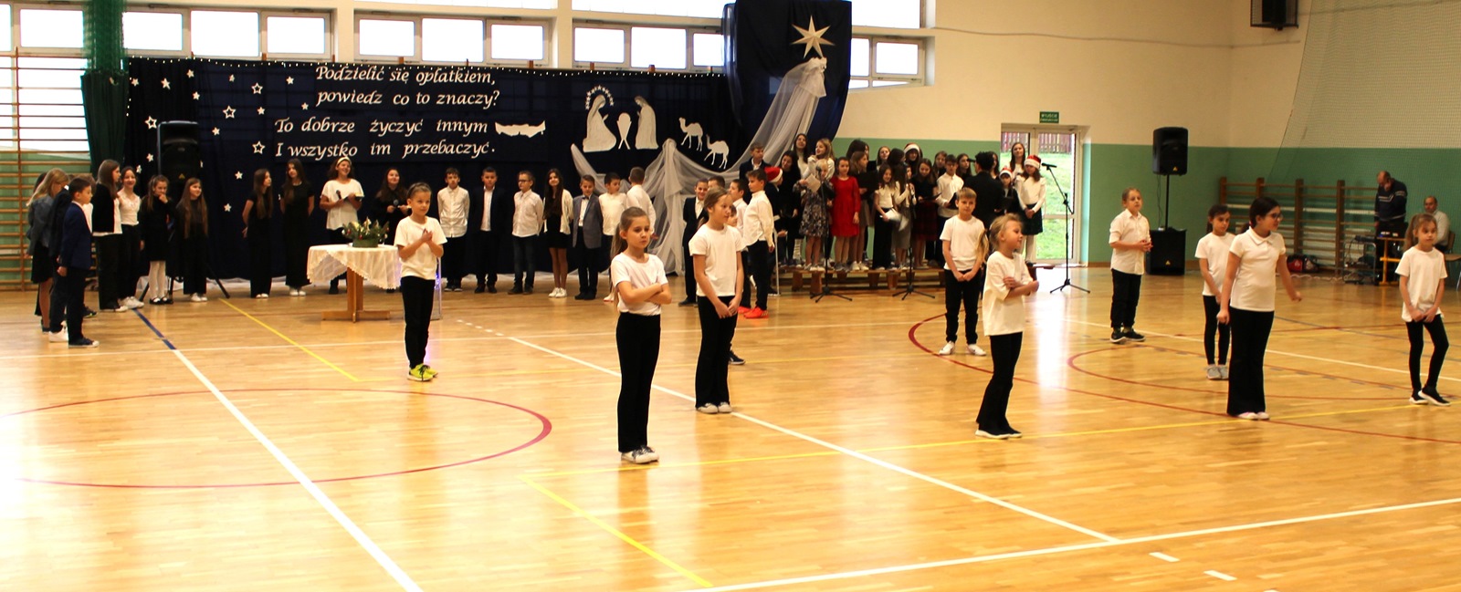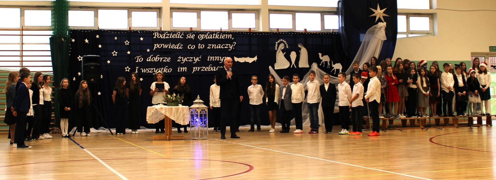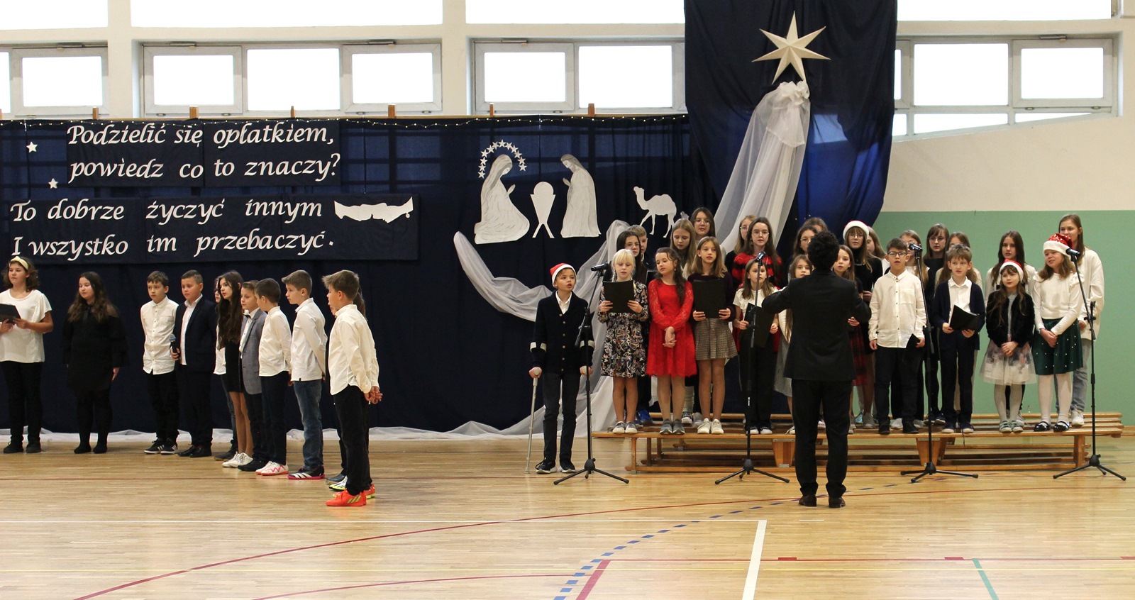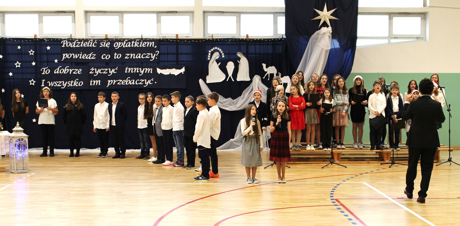 Zbliżające się Święta Bożego Narodzenia to czas wyczekiwany szczególnie przez dzieci. 18 grudnia w naszej szkole można było poczuć magię świąt za sprawą jasełek. Piękny występ uczniów klasy 5 pod opieką p. Anety Bąk wprowadził wszystkich w świąteczny nastrój. Zebranych przywitali uczniowie klasy 3a układem tanecznym do utworu „Mario, czy Ty wiesz…”. Inscenizacja przeplatana była kolędami i pastorałkami w wykonaniu chóru szkolnego pod batutą p. Dariusza Borkowskiego-Thieu, klas nauczania wczesnoszkolnego oraz klas 6a i 6b. Na koniec głos zabrał dyrektor szkoły p. Mariusz Wangryn, który podziękował młodym artystom i ich opiekunom za przygotowanie wyjątkowych jasełek oraz za wspaniałe wprowadzenie w atmosferę Świąt Bożego Narodzenia. Złożył także świąteczne życzenia uczniom, nauczycielom i pracownikom szkoły.