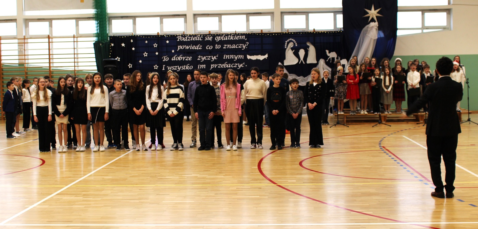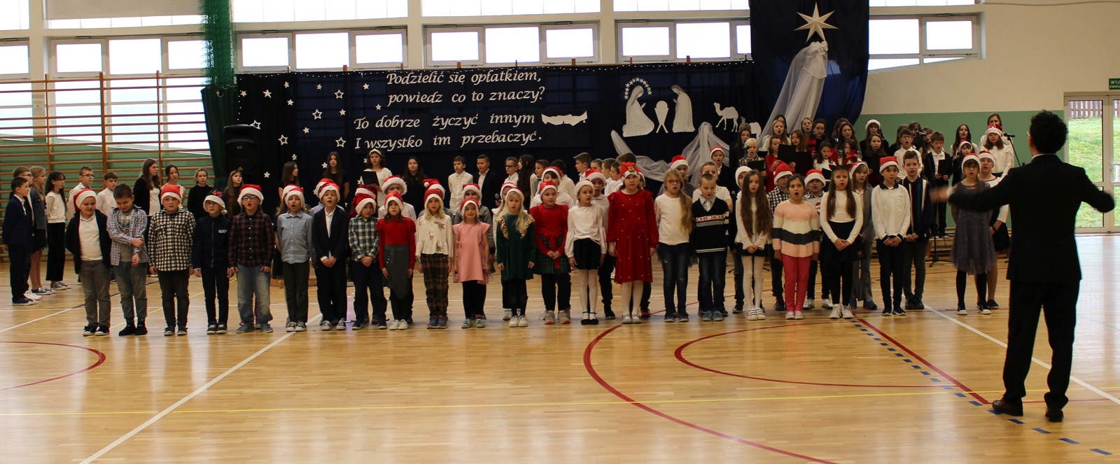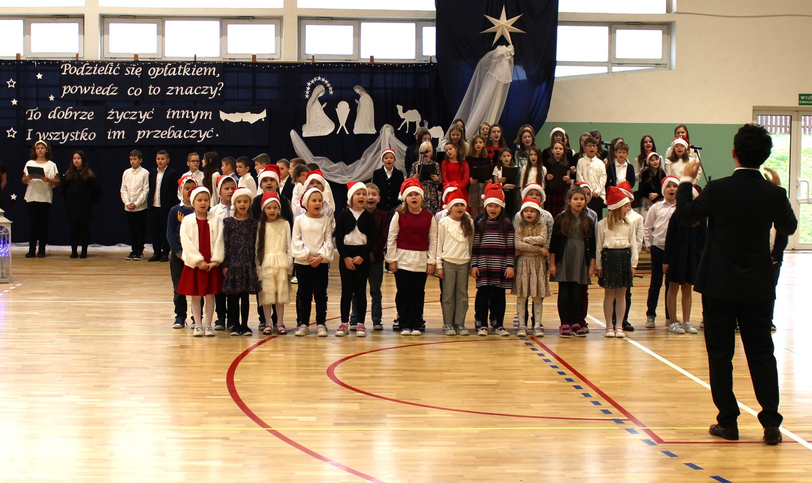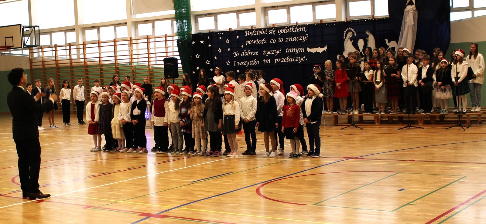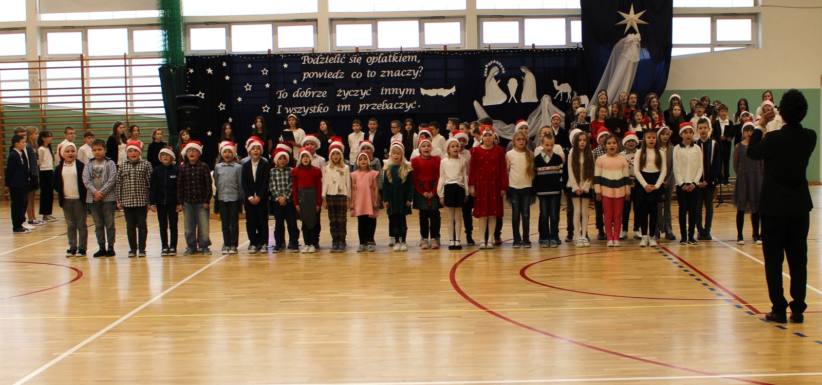 Zbliżające się Święta Bożego Narodzenia to czas wyczekiwany szczególnie przez dzieci. 18 grudnia w naszej szkole można było poczuć magię świąt za sprawą jasełek. Piękny występ uczniów klasy 5 pod opieką p. Anety Bąk wprowadził wszystkich w świąteczny nastrój. Zebranych przywitali uczniowie klasy 3a układem tanecznym do utworu „Mario, czy Ty wiesz…”. Inscenizacja przeplatana była kolędami i pastorałkami w wykonaniu chóru szkolnego pod batutą p. Dariusza Borkowskiego-Thieu, klas nauczania wczesnoszkolnego oraz klas 6a i 6b. Na koniec głos zabrał dyrektor szkoły p. Mariusz Wangryn, który podziękował młodym artystom i ich opiekunom za przygotowanie wyjątkowych jasełek oraz za wspaniałe wprowadzenie w atmosferę Świąt Bożego Narodzenia. Złożył także świąteczne życzenia uczniom, nauczycielom i pracownikom szkoły.