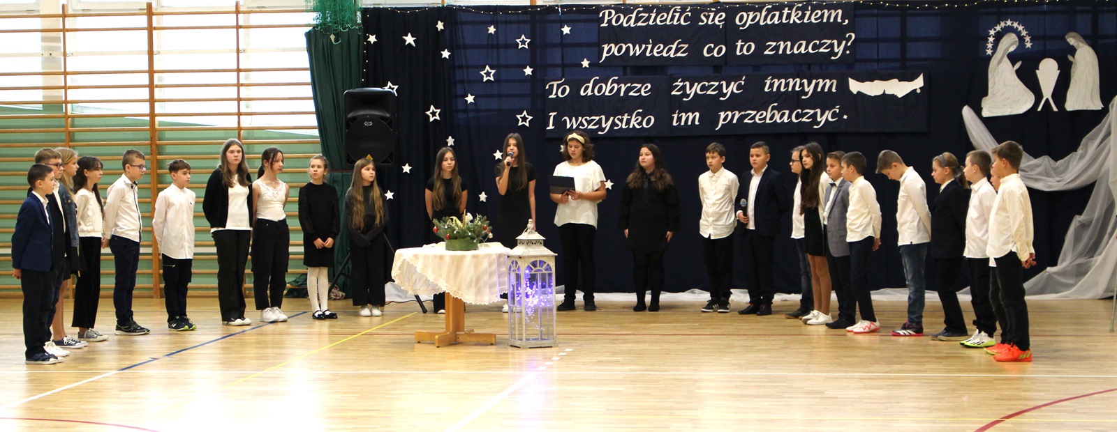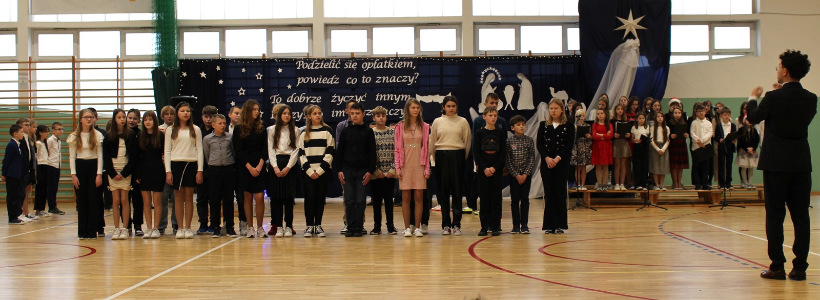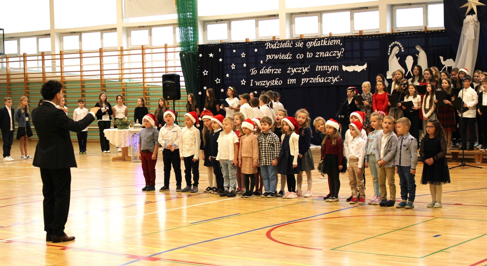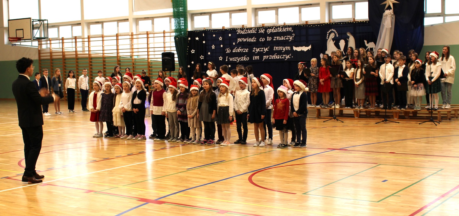 Zbliżające się Święta Bożego Narodzenia to czas wyczekiwany szczególnie przez dzieci. 18 grudnia w naszej szkole można było poczuć magię świąt za sprawą jasełek. Piękny występ uczniów klasy 5 pod opieką p. Anety Bąk wprowadził wszystkich w świąteczny nastrój. Zebranych przywitali uczniowie klasy 3a układem tanecznym do utworu „Mario, czy Ty wiesz…”. Inscenizacja przeplatana była kolędami i pastorałkami w wykonaniu chóru szkolnego pod batutą p. Dariusza Borkowskiego-Thieu, klas nauczania wczesnoszkolnego oraz klas 6a i 6b. Na koniec głos zabrał dyrektor szkoły p. Mariusz Wangryn, który podziękował młodym artystom i ich opiekunom za przygotowanie wyjątkowych jasełek oraz za wspaniałe wprowadzenie w atmosferę Świąt Bożego Narodzenia. Złożył także świąteczne życzenia uczniom, nauczycielom i pracownikom szkoły.