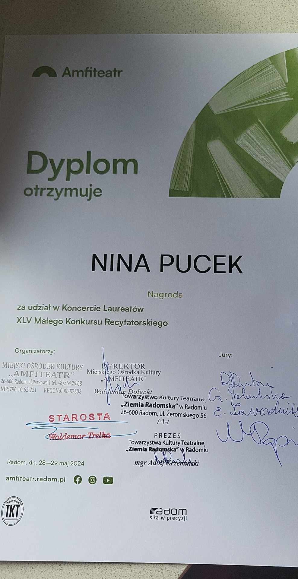 Serdecznie gratulujemy Ninie oraz życzymy kolejnych sukcesów.