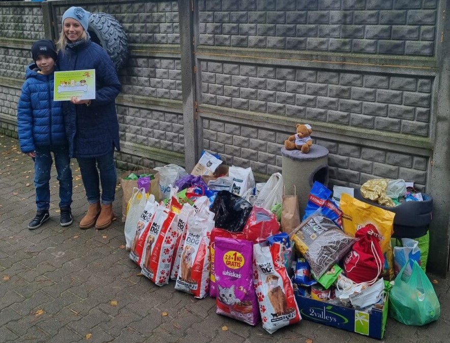 Tej jesieni z okazji przypadającego na 25 października Dnia Kundelka Samorząd Uczniowski po raz kolejny zorganizował zbiórkę karmy, zabawek, ciepłych kocy, legowisk i innych potrzebnych rzeczy dla psów i kotów ze schroniska dla zwierząt w Małym Bożym, w którym obecnie przebywa ponad 200 podopiecznych. Pracownicy bardzo ucieszyli się z przywiezionych przez nas darów i prosili o przekazanie podziękowań dla wszystkich uczniów, którzy wsparli akcję.