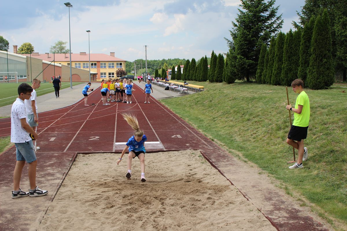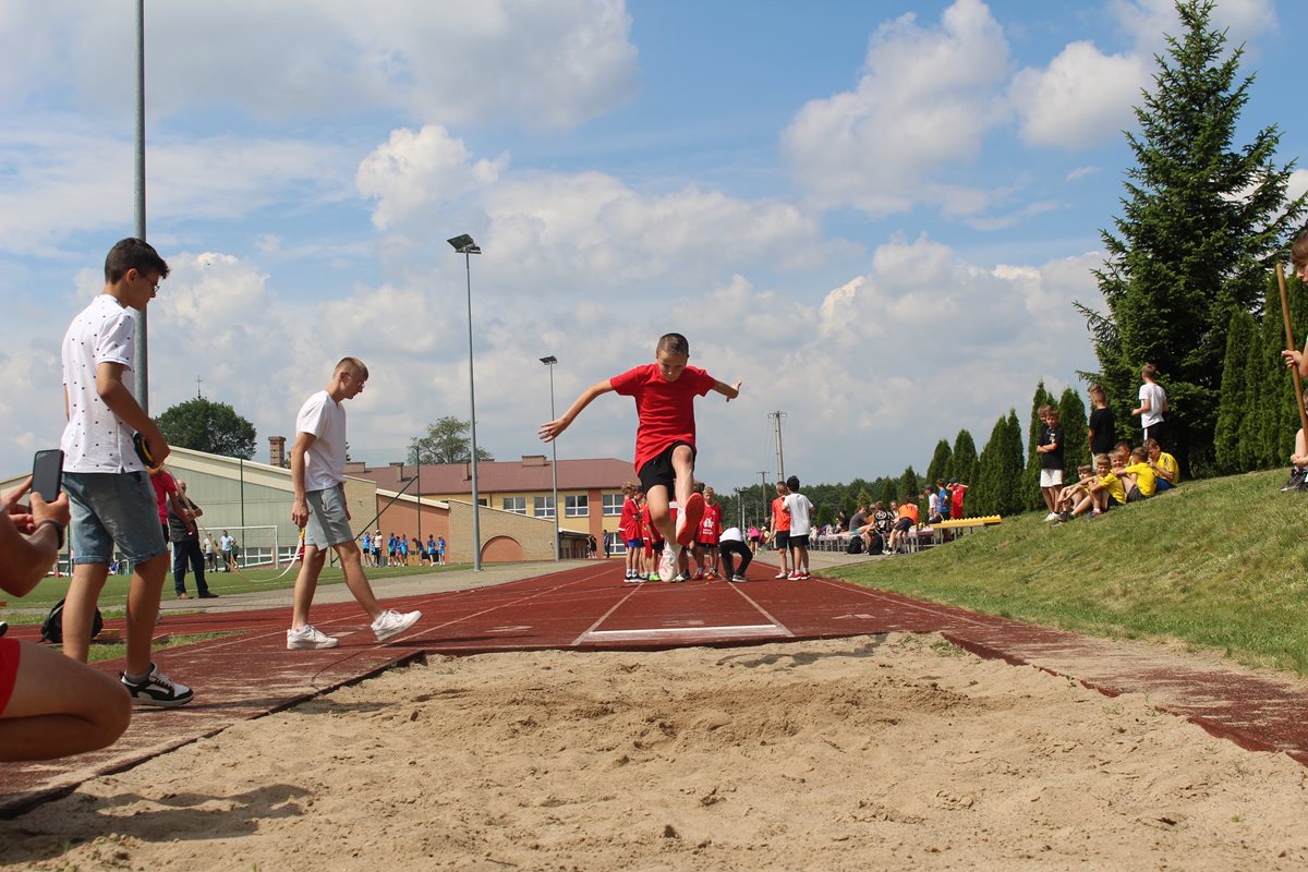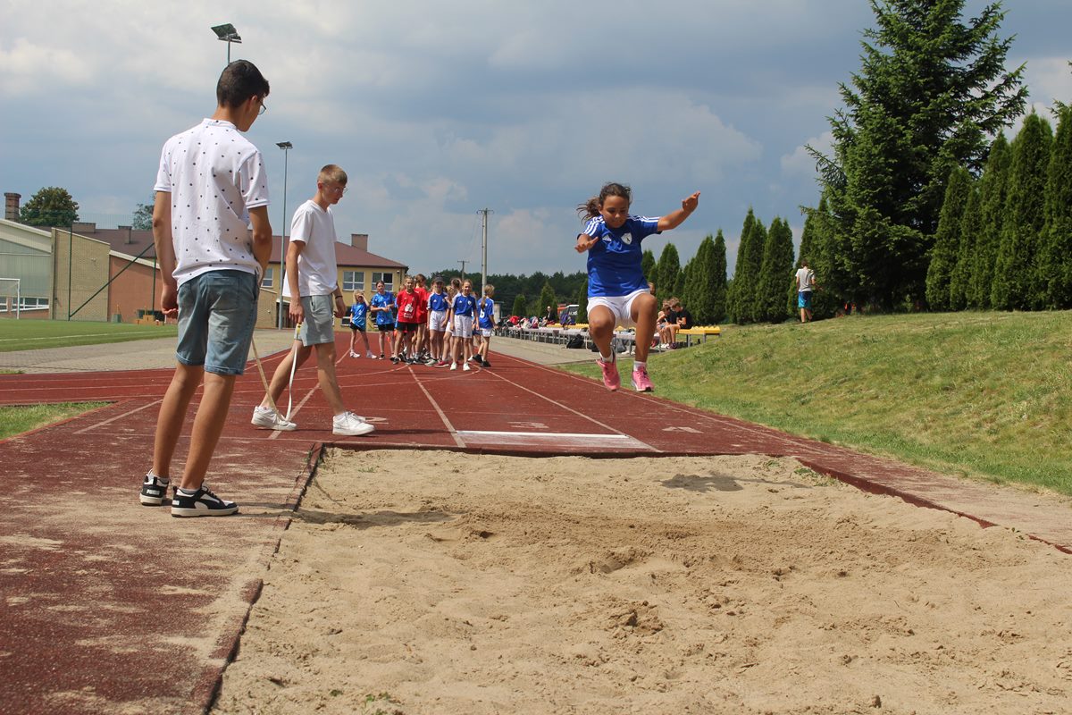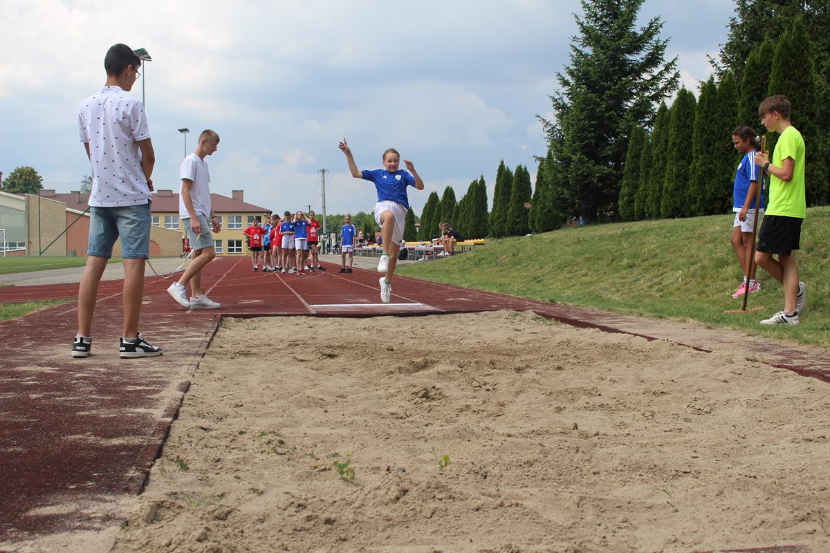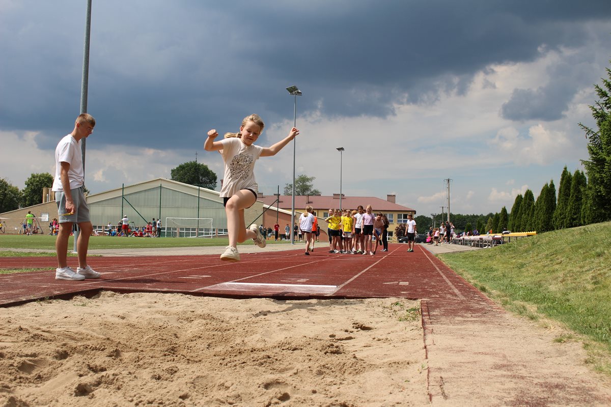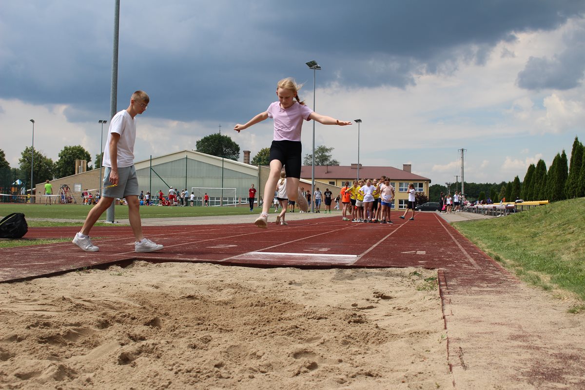 Ciekawa rywalizacja wywiązała się także podczas skoków w dal lecz po trzech seriach bezkonkurencyjni okazały się dziewczęta PSP Goszczyn Gabriela Orzechowska i Aleksander Białkowski.