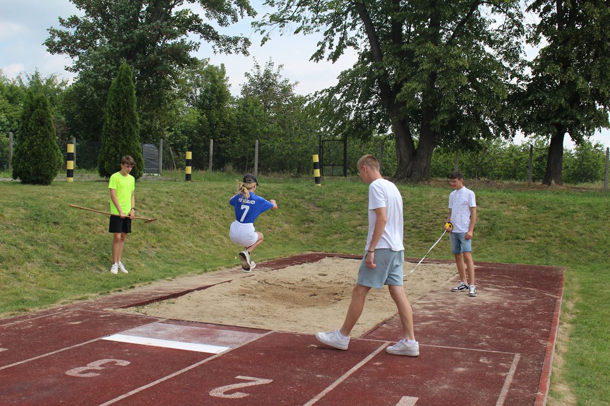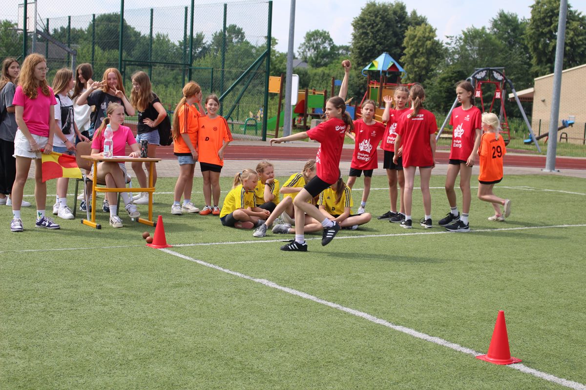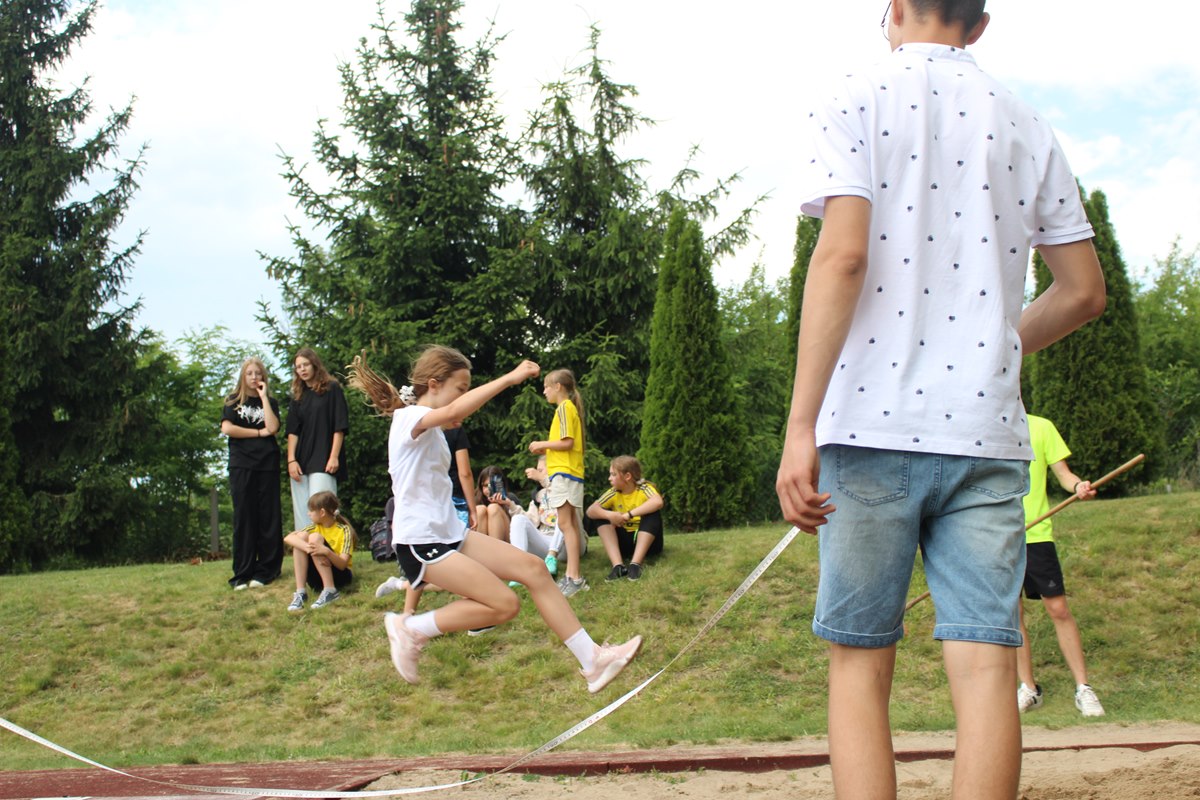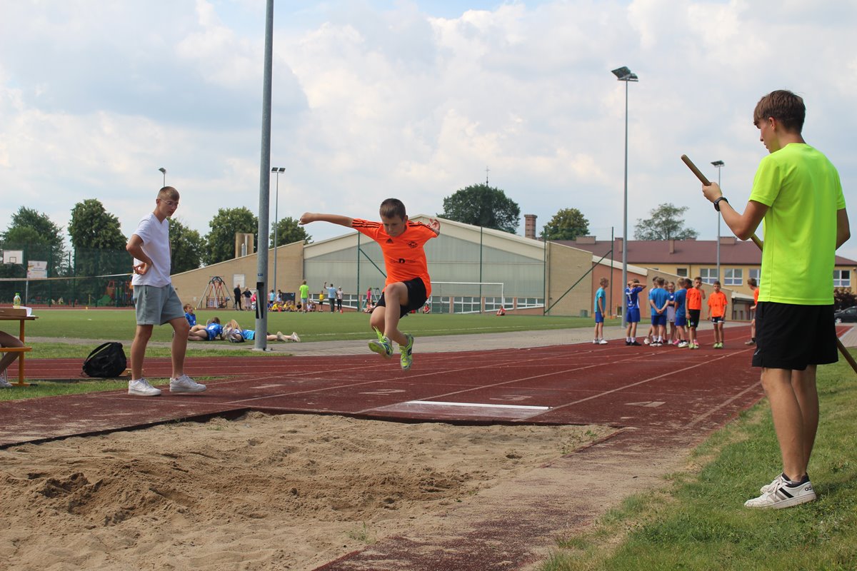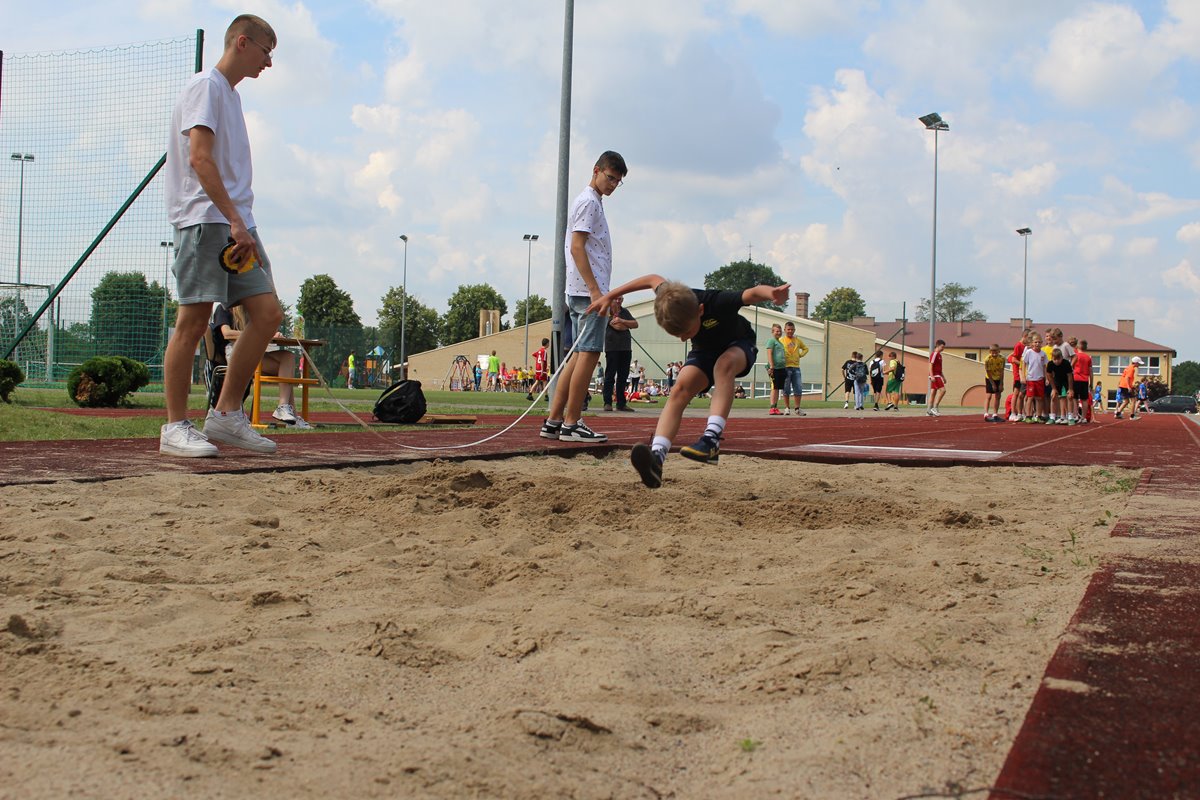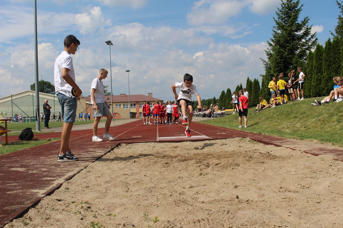 Ciekawa rywalizacja wywiązała się także podczas skoków w dal lecz po trzech seriach bezkonkurencyjni okazały się dziewczęta PSP Goszczyn Gabriela Orzechowska i Aleksander Białkowski.