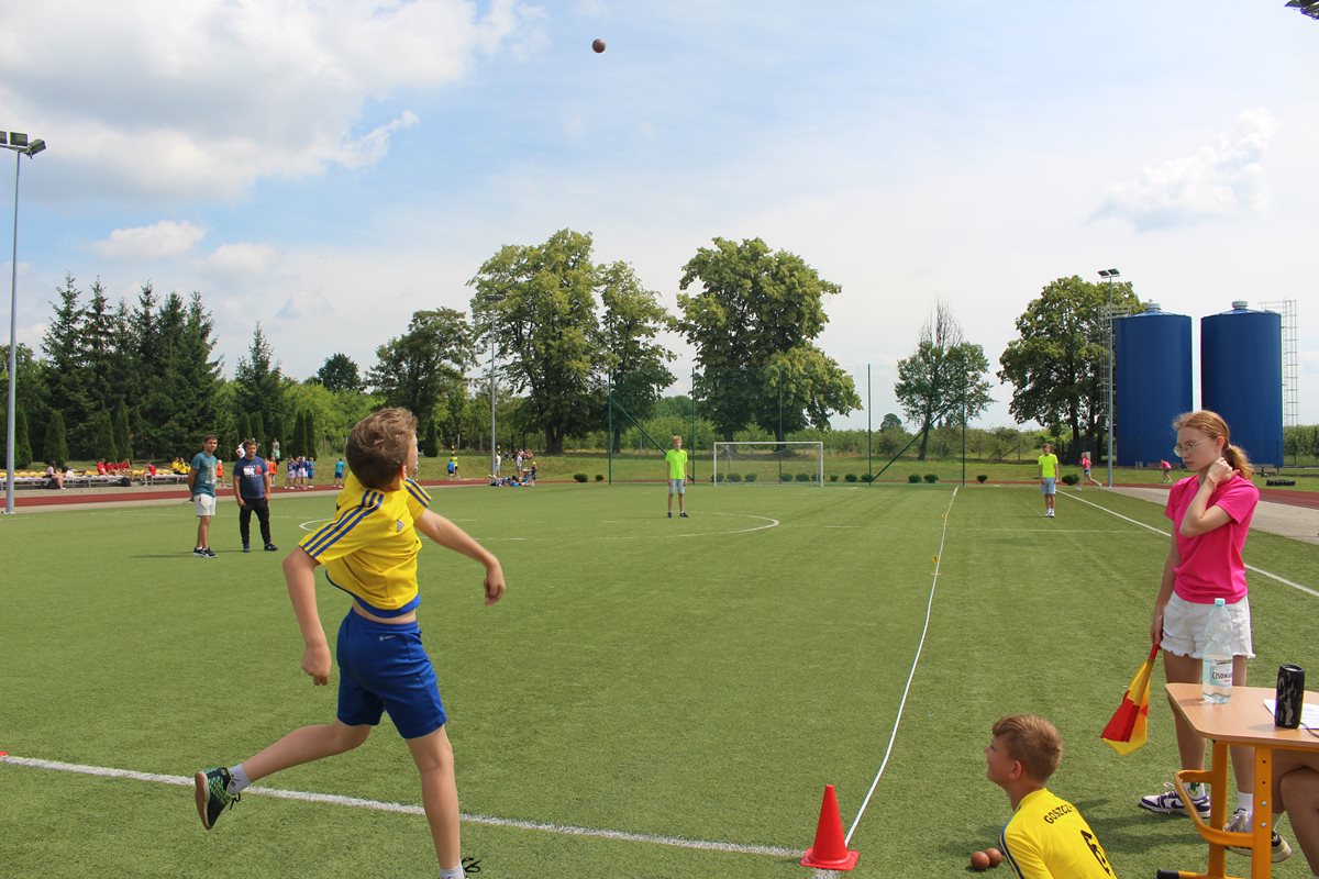 Dalekie rzuty piłeczką palantową okazały się nie lada wyzwaniem. Najlepsze rzuty oddali uczniowie PSP w Goszczynie Urszula Stępień i Aleksander Białkowski.
