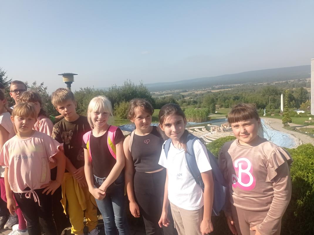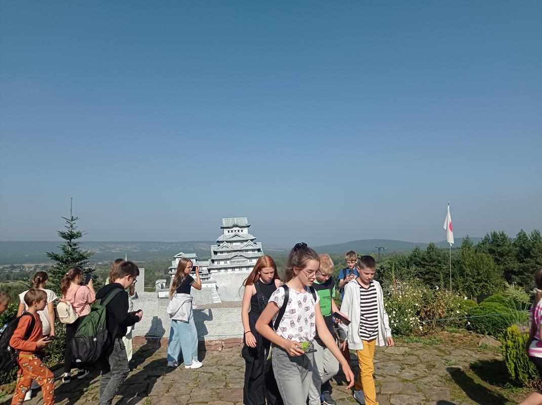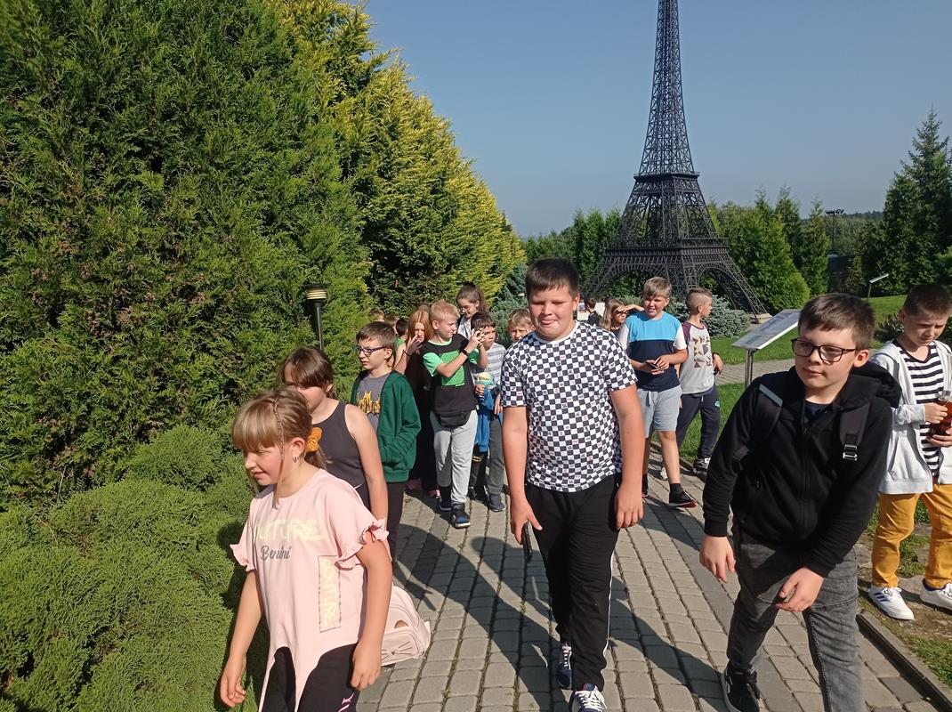 Pełni wrażeń opuszczaliśmy to miejsce by udać się do Alei Miniatur w Krajnie u podnóża Łysicy. Podziwiając bogactwo przyrody, ukształtowanie terenu, zachwycające krajobrazy, dotarliśmy na miejsce. W Krajnie poznaliśmy miniatury dwudziestu siedmiu najsłynniejszych miejsc świata, wysłuchaliśmy opowieści przewodnika o dziełach  światowej sławy architektów oraz natury. Usłyszeliśmy kilka ciekawostek związanych z województwem świętokrzyskim  następnie faktów, łączących region z niektórymi budowlami.