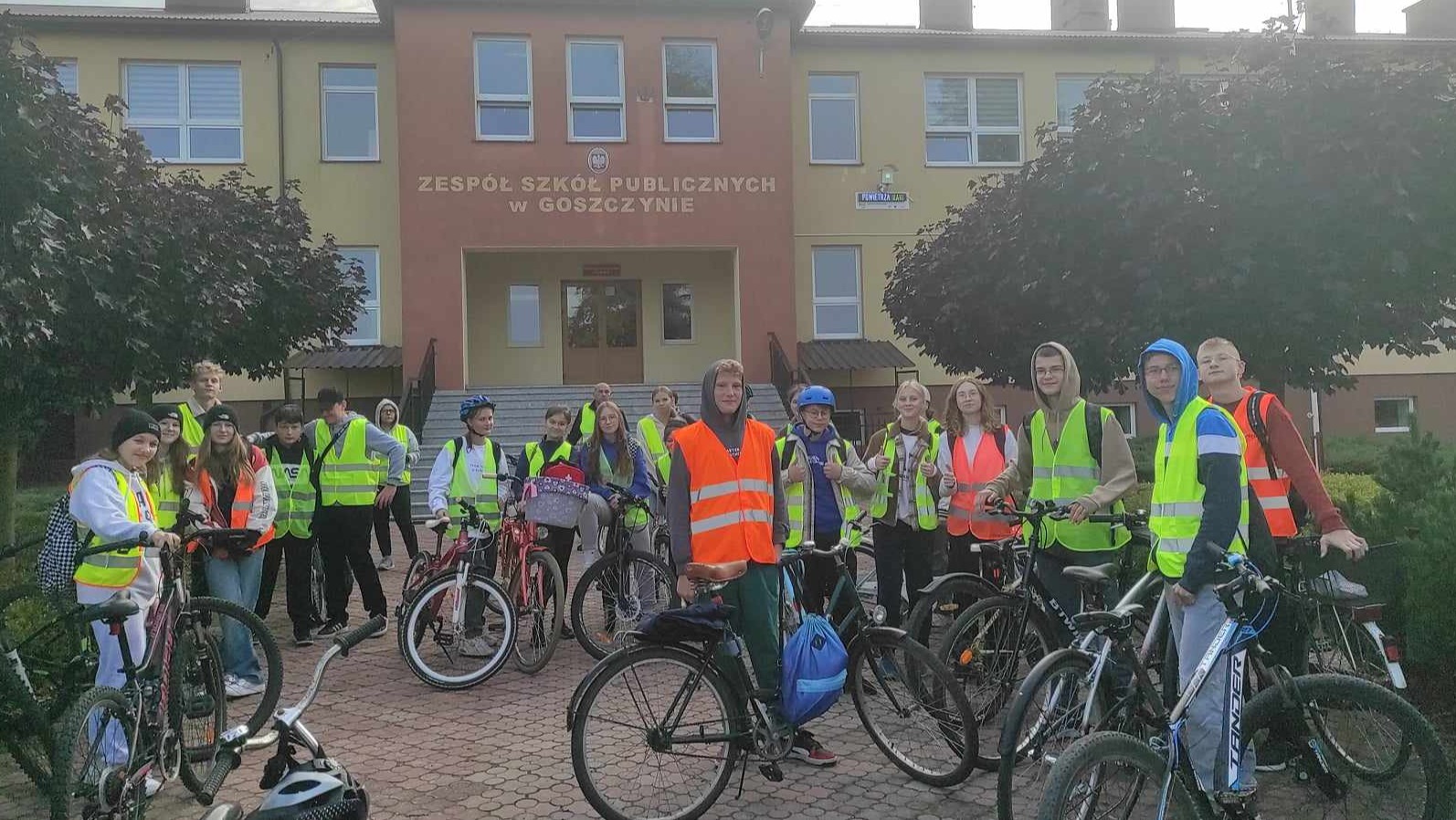 W czwartek 5 października 2023 r. całą klasą VIII z wychowawczynią Agnieszką Popkowicz, p. Natalią Strotsen i p. Piotrem Szewczykiem wybraliśmy się rowerami na wycieczkę krajoznawczą. Przed wycieczką bardzo się ekscytowaliśmy, że spędzimy miło czas, poza murami szkoły. Wyjechaliśmy około godziny 8:10, paru kolegów miało delikatne opóźnienie, lecz w Belsku byliśmy na czas. Podczas jazdy wiał bardzo silny wiatr a cały sznur rowerzystów wyglądał czasem komicznie, w końcu nie spotyka się na co dzień takiej dużej grupy rowerowej. Pierwszym punktem było zwiedzanie zabytkowego kościoła pod wezwaniem  Świętej Trójcy w Belsku Dużym. Tam dowiedzieliśmy się kto spoczywa w kościelnych piwnicach. Gdy byliśmy w kościele mogliśmy się przenieść do drugiej połowy XVIII w.  Proboszcz parafii opowiedział nam o bardzo ciekawiej historii kościoła.