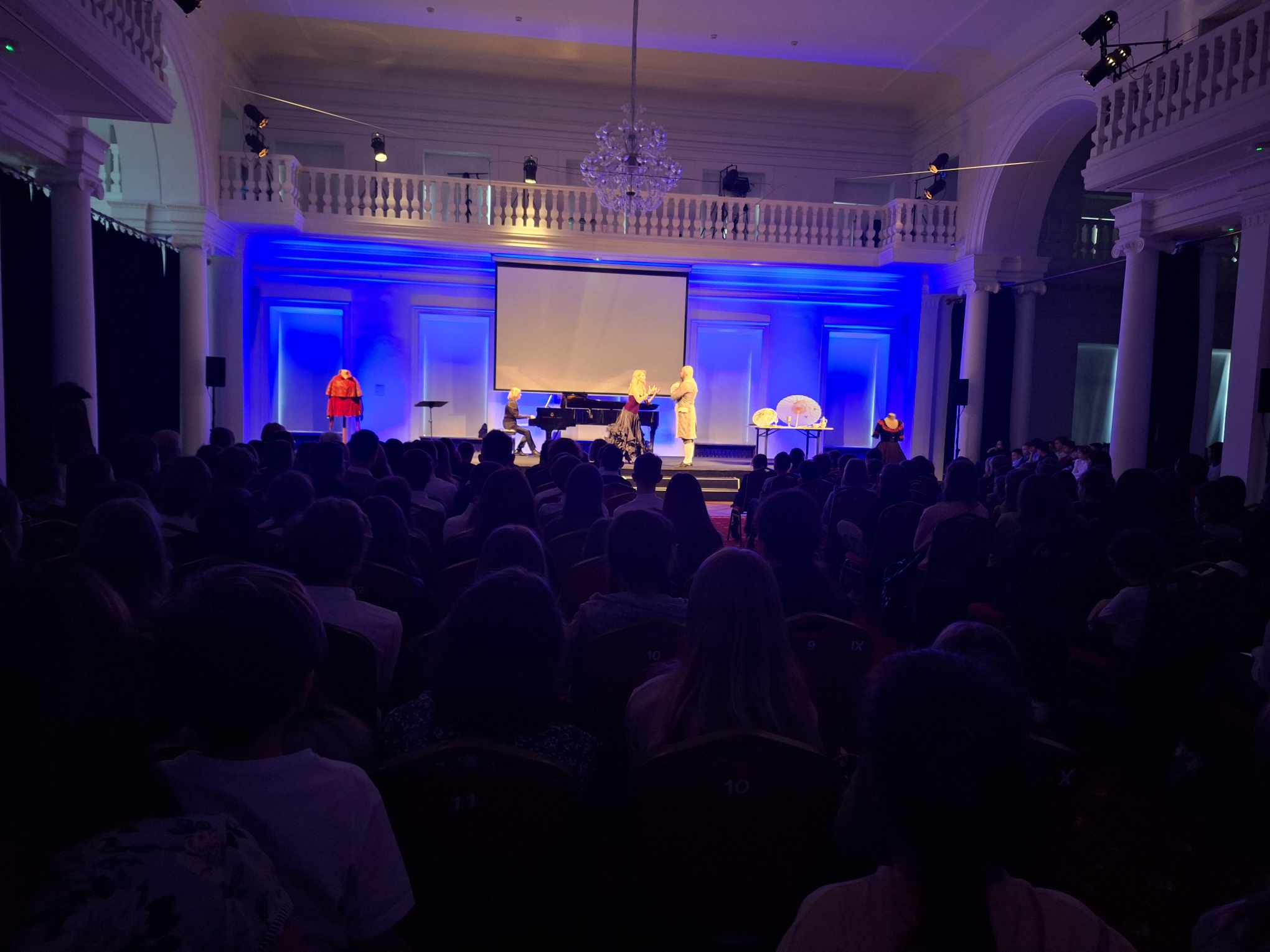 Następnie udaliśmy się do Opery Narodowej, aby wziąć udział w lekcji teatralnej. Uczniowie dowiedzieli się na temat historii Teatru Wielkiego, mieli także możliwość obejrzenia budynków oraz wnętrz oper za granicą. Warto wspomnieć, że Sala Moniuszki jest jedną z największych scen operowych na świecie. Dowiedzieliśmy się, czym jest samo pojęcie „opera” oraz z jakich części się składa. Wysłuchaliśmy także przykładowych partii wokalnych (recytatywy, arie, ansamble) oraz orkiestrowych (uwertura czy intermezzo). Uczniowie, poza zdobyciem wiedzy na temat samego gatunku muzycznego oraz poznaniem nowych pojęć, mieli przyjemność wysłuchania przejmujących fragmentów z najbardziej znanych oper Mozarta, Verdiego czy innych.