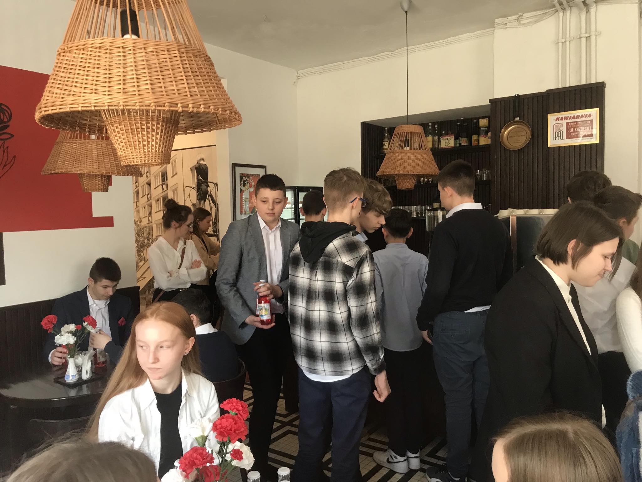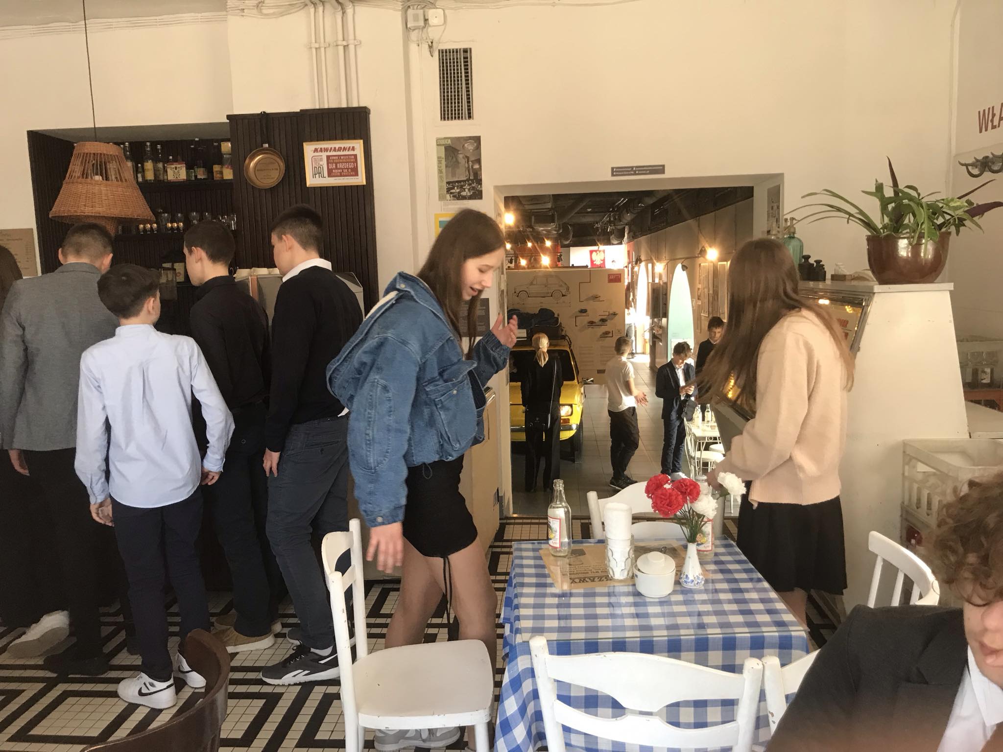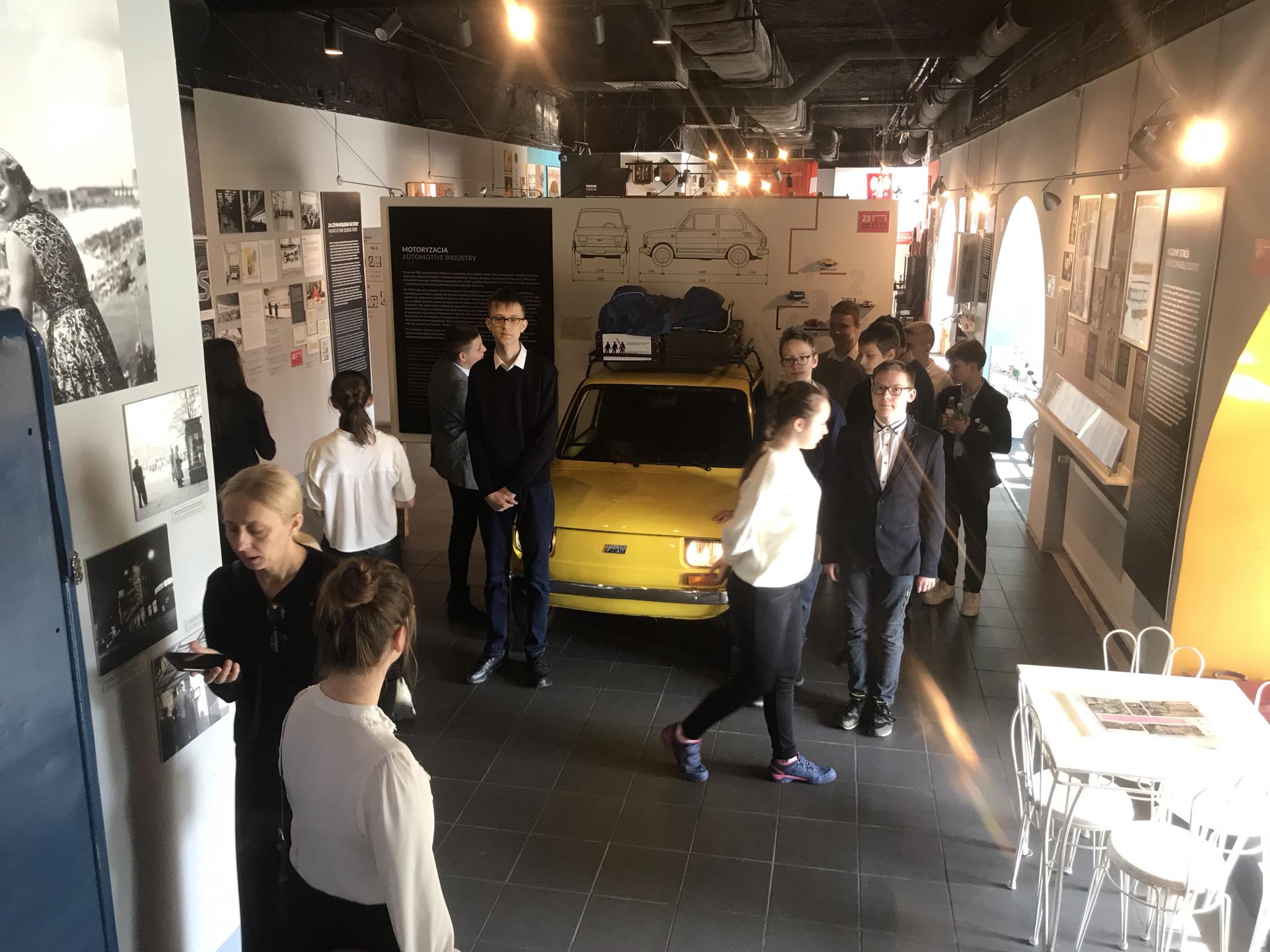 Pierwszym punktem programu było Muzeum Życia w PRL. Uczniowie dowiedzieli się, jak wyglądało życie w Polsce po 1945 roku. Przewodnicy opowiadali na temat czasów komunizmu – o walce z władzą, strajkach czy wprowadzeniu stanu wojennego 13 grudnia  1981 roku. Mieliśmy możliwość obejrzeć fragmenty filmów propagandowych, ale także przyjrzeć się z bliska sprzętom gospodarstwa domowego, ówczesnym nowinkom technicznym używanym w drugiej połowie XX wieku. Dzieci wsiadały do Fiata 126p, korzystały z budki telefonicznej oraz oglądały saturator do wody gazowanej z tzw. musztardówką. Po skończonej lekcji uczniowie mogli napić się oranżady czy kupić gumę „Turbo”.