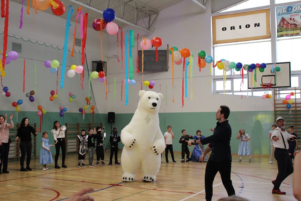 W piątek 12 stycznia 2024 r. w pięknie udekorowanej sali gimnastycznej odbyła się zabawa choinkowa dla wszystkich uczniów naszej Szkoły. O oprawę muzyczną zadbał DJ, dodatkową atrakcją dla wszystkich najmłodszych miłośników choinkowej zabawy był niedźwiedź polarny.