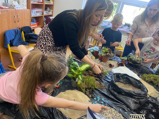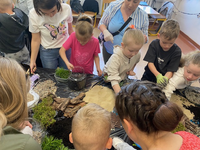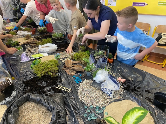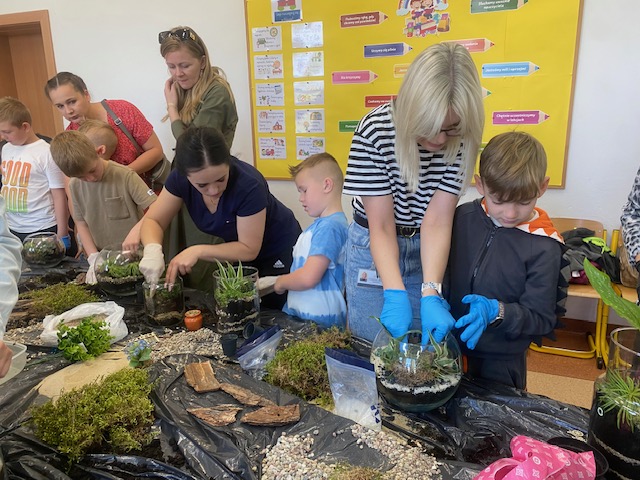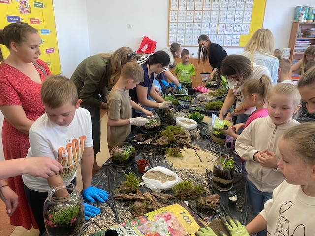 26 maja odbyły się warsztaty z okazji Dnia Mamy, podczas których uczniowie wraz ze swoimi mamami mieli okazję stworzyć własne miniaturowe lasy w słoikach. Celem zajęć było rozwijanie kreatywności, zdolności manualnych oraz wyrażanie uczuć wobec mam.