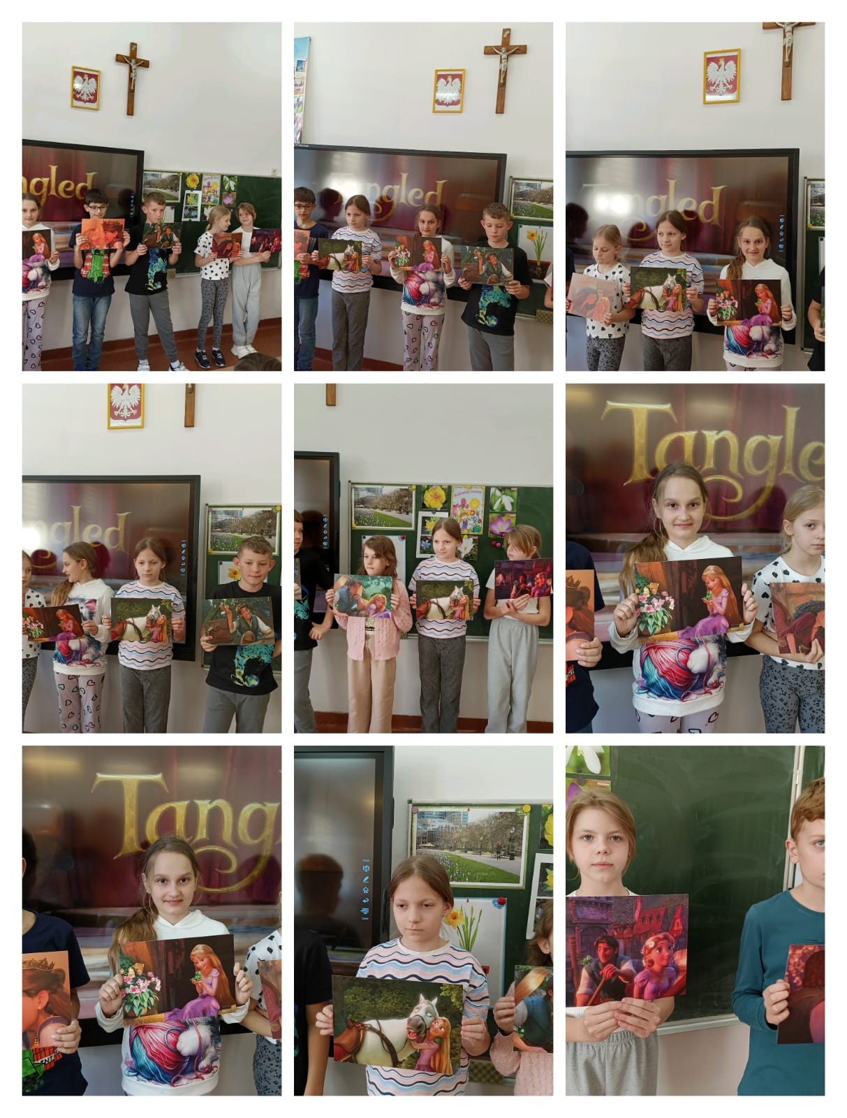 W ramach projektu uczniowie klasy 3b czytali książeczkę Rapunzel i wykonywali różnorodne zadania związane z jej treścią, takie jak ćwiczenia leksykalne, prace plastyczne, scenki dramowe oraz krótkie prezentacje ustne. Dodatkowo uczniowie porównywali przeczytaną książkę z filmem animowanym Zaplątani, analizując podobieństwa i różnice między wersją literacką a ekranizacją. Ćwiczenie to rozwijało nie tylko umiejętności językowe, ale również krytyczne myślenie i rozumienie przekazu kulturowego.