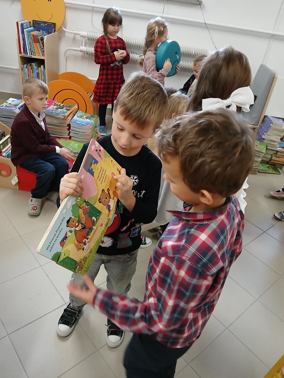 Na koniec dzieci oglądały księgozbiór dla najmłodszych czytelników, a także po raz pierwszy samodzielnie wypożyczały wybrane książki, które przeczytają same lub z pomocą dorosłych.