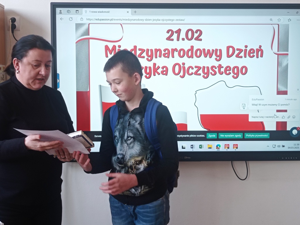 W bieżącym roku szkolnym uczniowie klas 5-7 uczestniczyli w projekcie edukacyjnym, którego celem było poszerzanie wiedzy na temat języka ojczystego. Wyszukiwali ciekawostek z zakresu języka polskiego, odwoływali się do przemian zachodzących w polszczyźnie na przestrzeni wieków i poznawali tajniki retoryki. W ramach obchodów Dnia Języka Ojczystego chętni wzięli udział w konkursie poetyckim „ Refleksyjna rymowanka o walorach języka polskiego”. Wyłonieni laureaci popisali się swoimi umiejętnościami lirycznymi i wrażliwością.