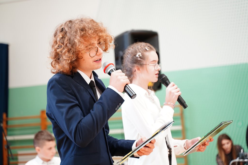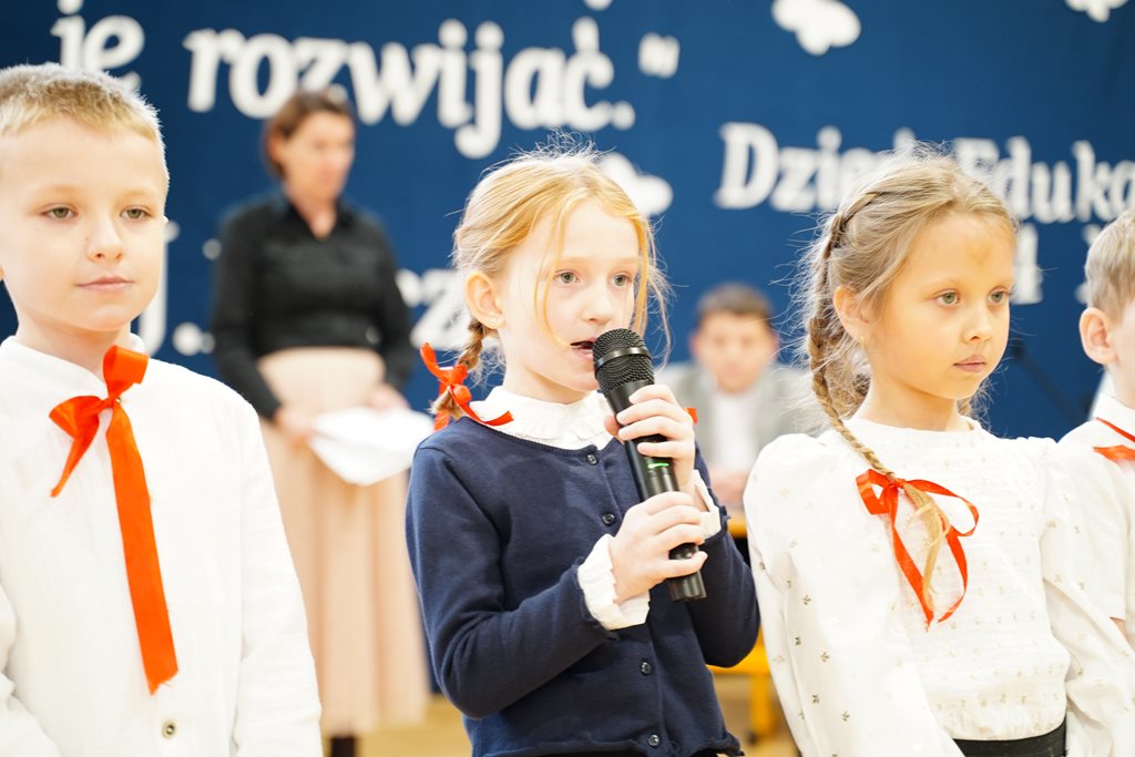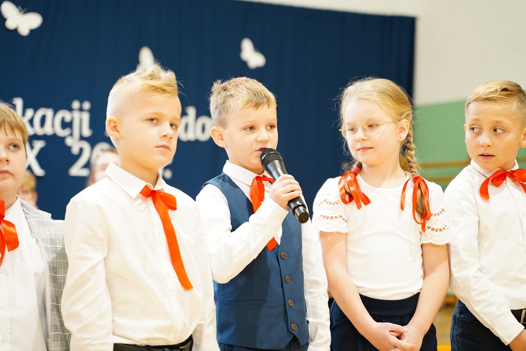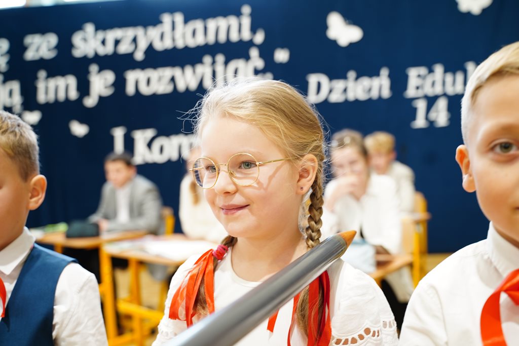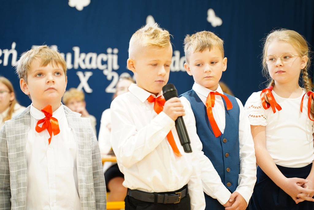 Następnie odbyła się krótka część artystyczna z okazji Dnia Edukacji Narodowej, przygotowana przez starszych kolegów i koleżanki oraz Samorząd Uczniowski. Nie zabrakło także pięknych życzeń dla nauczycieli z okazji ich święta. Był to wyjątkowy dzień pełen wzruszeń i radości, który na długo pozostanie w pamięci wszystkich uczestników.