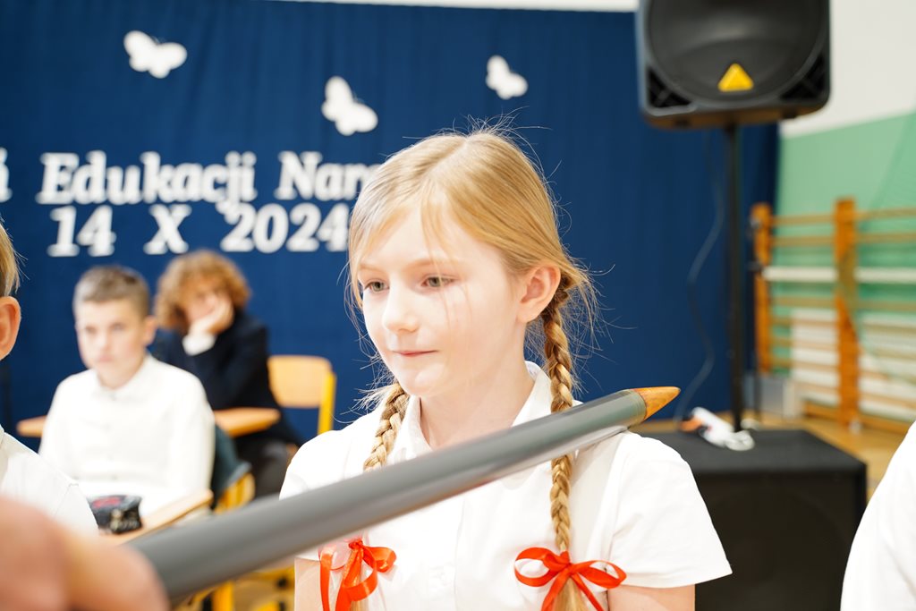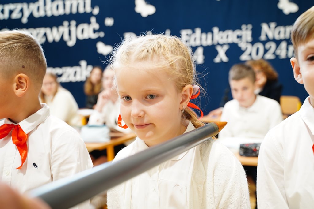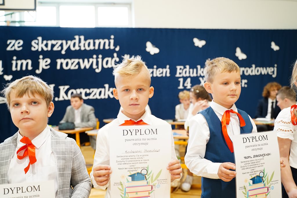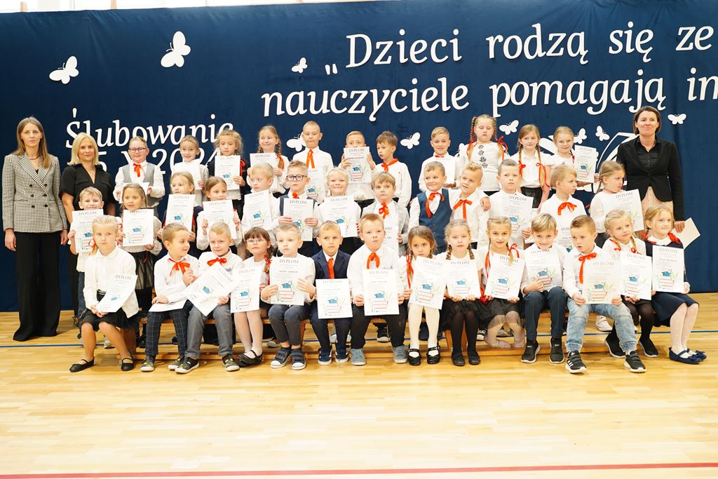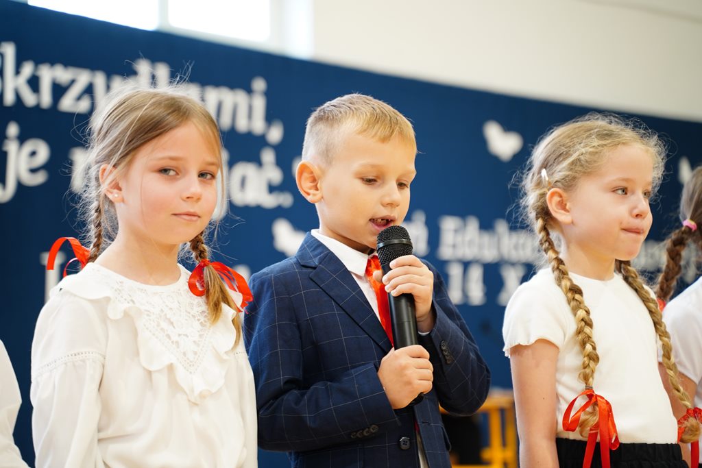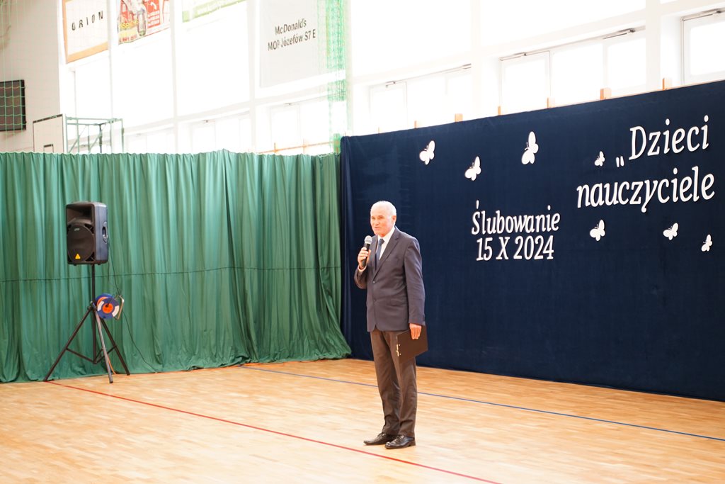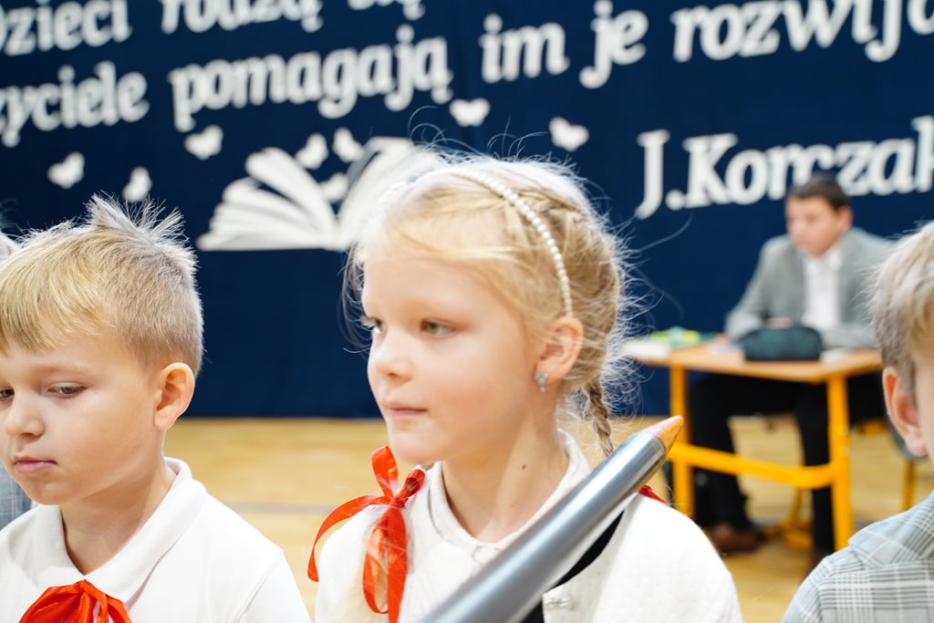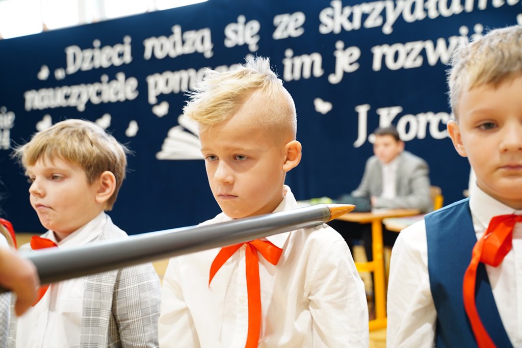 W dniu 15 października 2024 r. w naszej szkole odbyła się uroczystość ślubowania uczniów klas pierwszych połączona z uroczystym apelem z okazji Dnia Edukacji Narodowej. W wydarzeniu uczestniczyli uczniowie, nauczyciele oraz rodzice. Uroczystość rozpoczęła się od wprowadzenia sztandaru szkoły i odśpiewania hymnu państwowego. Nowi uczniowie złożyli uroczyste ślubowanie, w którym zobowiązali się być pilnymi i sumiennymi uczniami, szanować swoich nauczycieli oraz godnie reprezentować szkołę. Po ślubowaniu nastąpił moment pasowania na uczniów, które przeprowadził pan dyrektor, dotykając symbolicznie każde dziecko dużym ołówkiem. Część artystyczna była niezwykle barwna i radosna. Dzieci śpiewały piosenki, recytowały wiersze oraz zaprezentowały taniec, który wzbudził entuzjazm wśród zgromadzonej publiczności. Wychowawcy wręczyli uczniom pamiątkowe dyplomy.