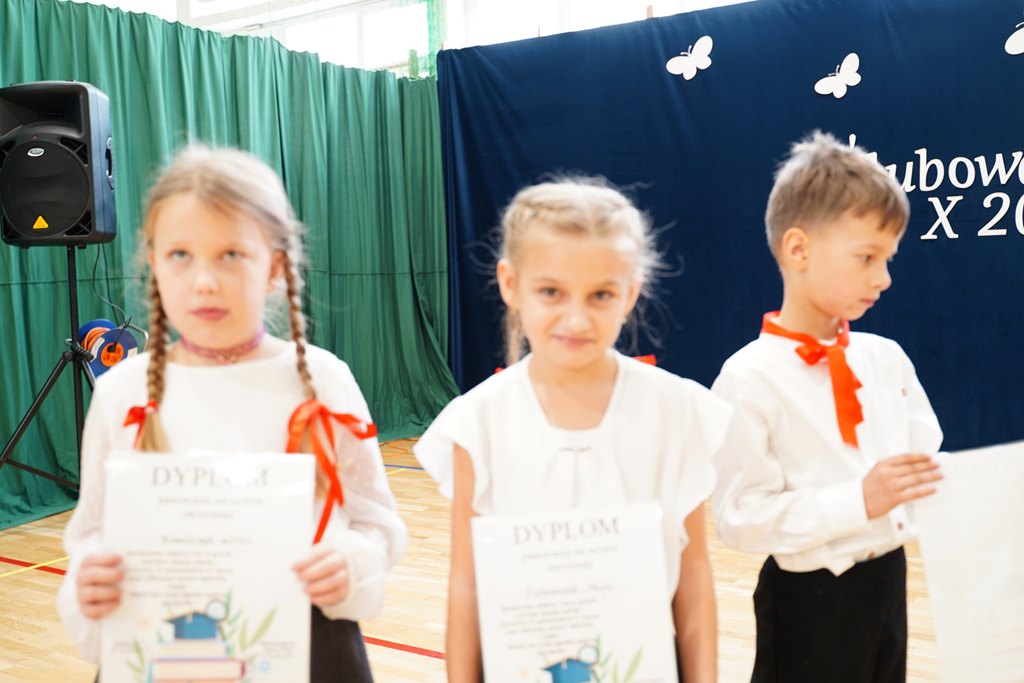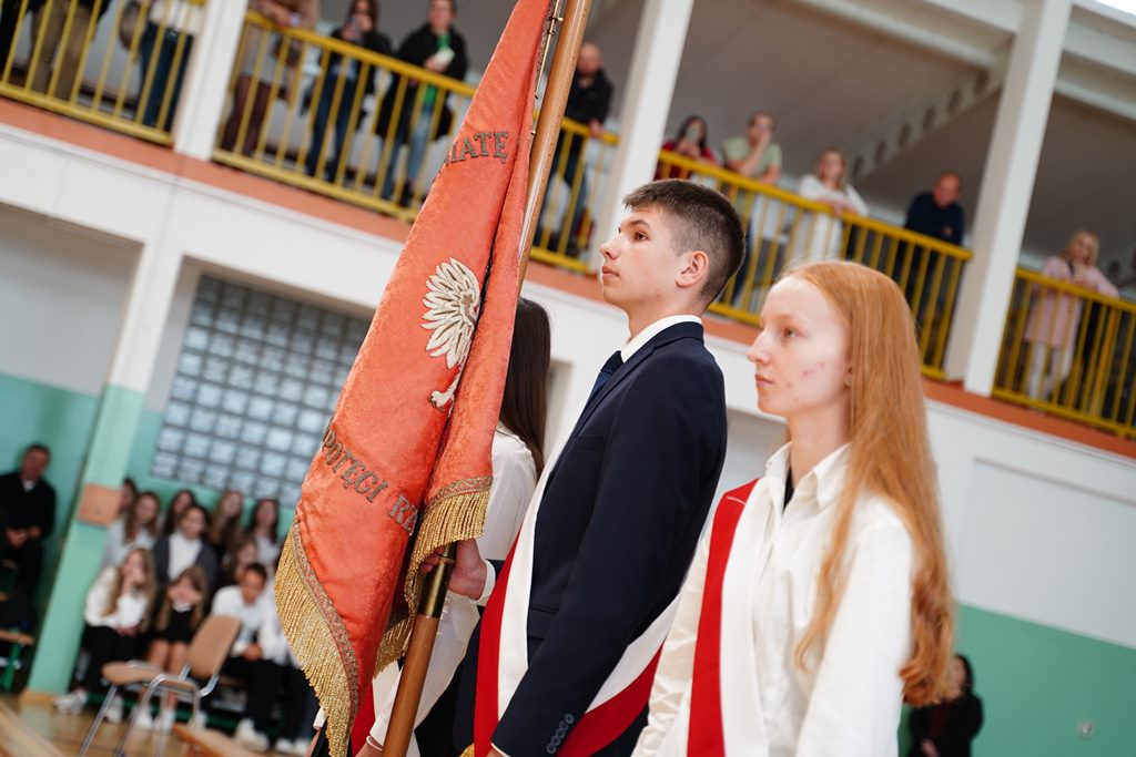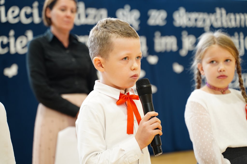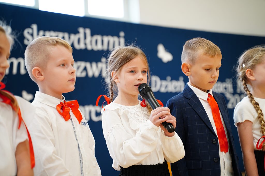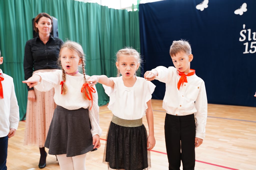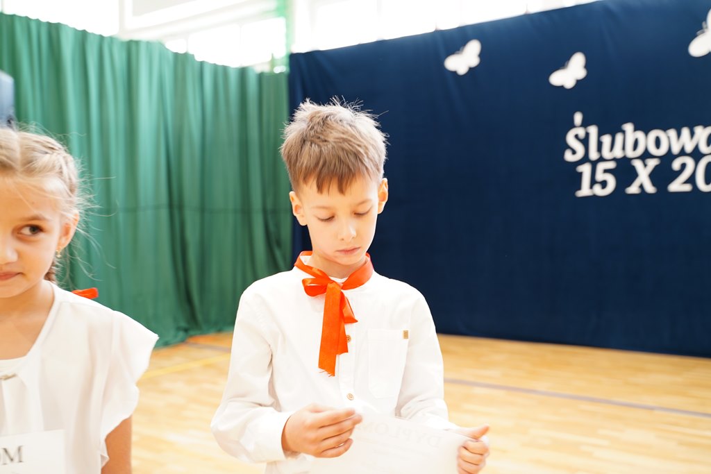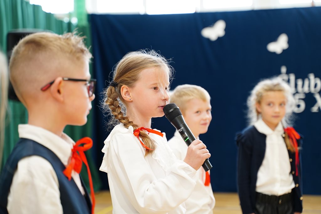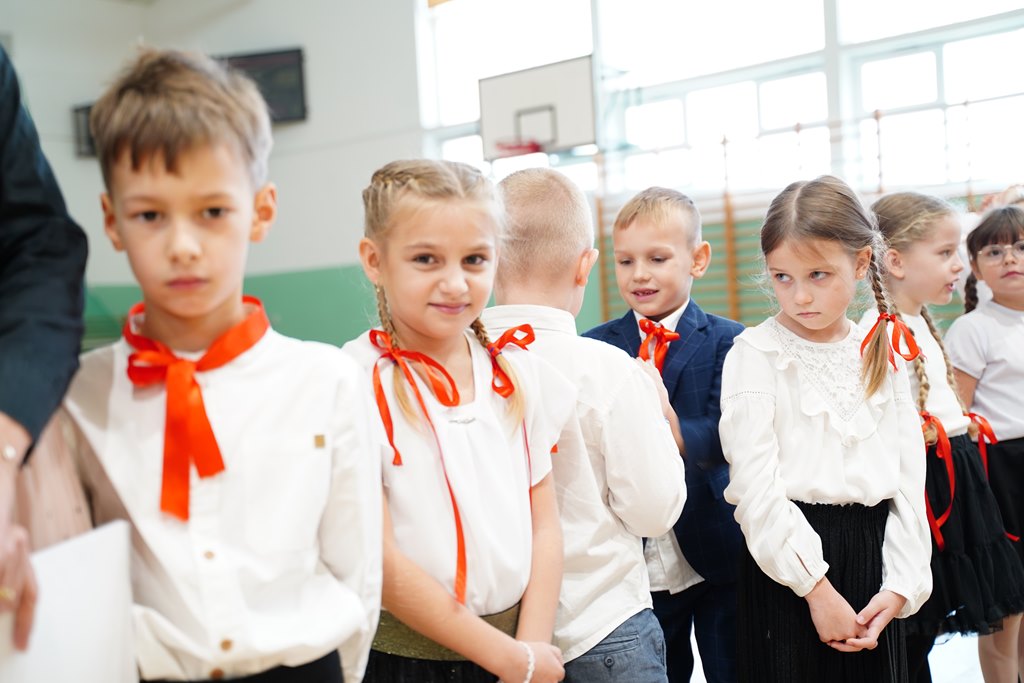 W dniu 15 października 2024 r. w naszej szkole odbyła się uroczystość ślubowania uczniów klas pierwszych połączona z uroczystym apelem z okazji Dnia Edukacji Narodowej. W wydarzeniu uczestniczyli uczniowie, nauczyciele oraz rodzice. Uroczystość rozpoczęła się od wprowadzenia sztandaru szkoły i odśpiewania hymnu państwowego. Nowi uczniowie złożyli uroczyste ślubowanie, w którym zobowiązali się być pilnymi i sumiennymi uczniami, szanować swoich nauczycieli oraz godnie reprezentować szkołę. Po ślubowaniu nastąpił moment pasowania na uczniów, które przeprowadził pan dyrektor, dotykając symbolicznie każde dziecko dużym ołówkiem. Część artystyczna była niezwykle barwna i radosna. Dzieci śpiewały piosenki, recytowały wiersze oraz zaprezentowały taniec, który wzbudził entuzjazm wśród zgromadzonej publiczności. Wychowawcy wręczyli uczniom pamiątkowe dyplomy.