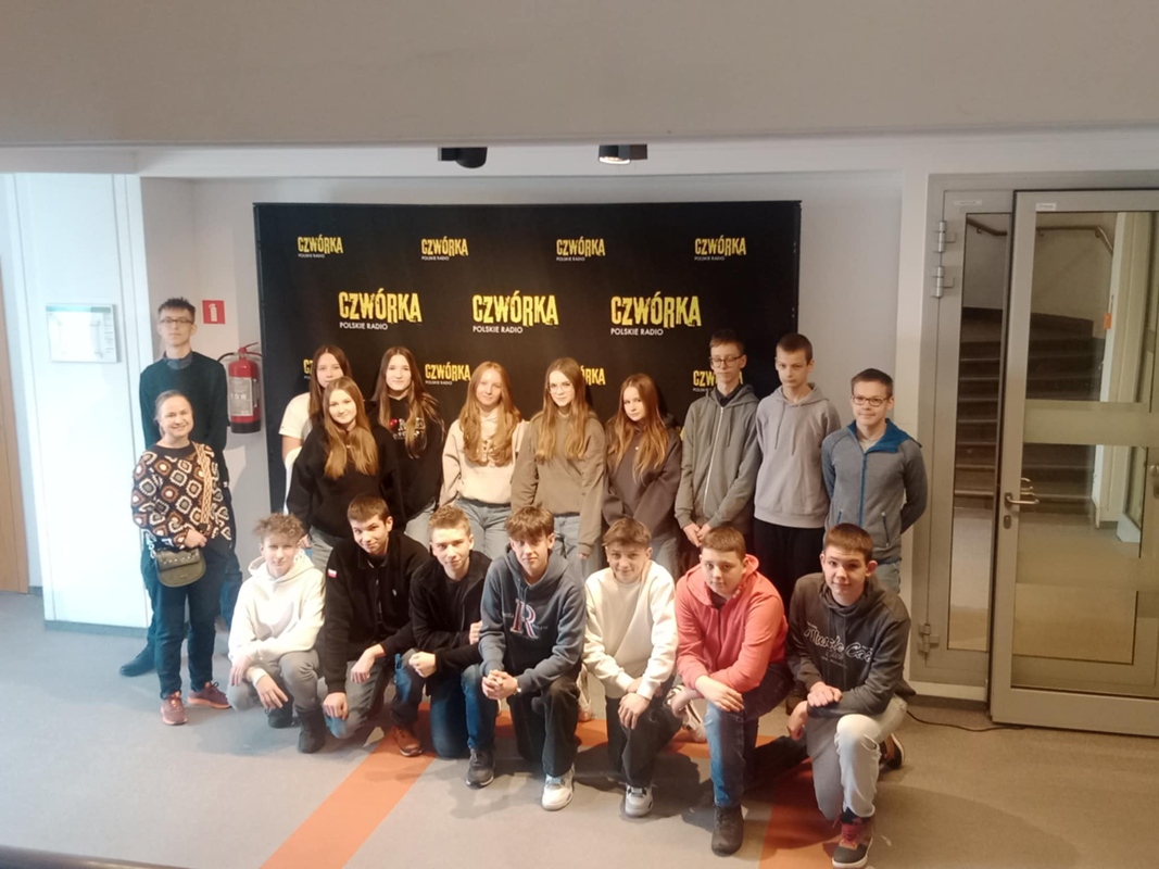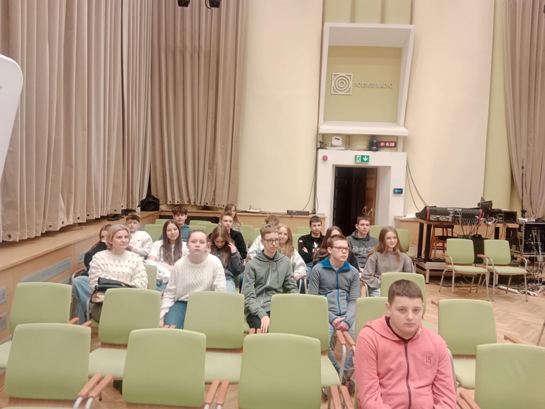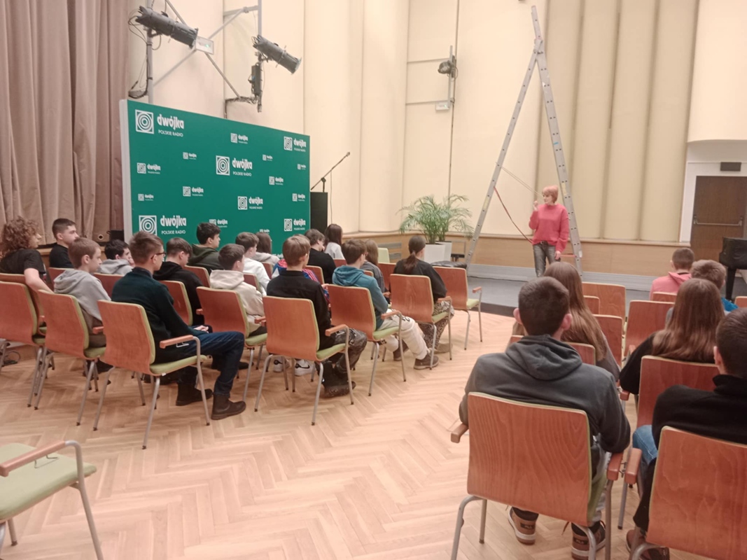 Kolejnym miejscem, do którego się udaliśmy, było Polskie Radio. O 100-letniej już rozgłośni opowiadała nam dziennikarka i aktorka dubbingowa – Agnieszka Kunikowska, której głos możemy znać m.in. z bajek: „Marta mówi” czy Shrek (królewna Fiona). Pani Agnieszka opowiedziała nam na temat: historii Polskiego Radia, działalności, a także o jego różnych rozgłośniach. Później mogliśmy zwiedzić sam budynek (przy al. Niepodległości) – obejrzeliśmy studio „Polskiego Radia Dzieciom” i studio „Czwórki Polskiego Radia”. Dowiedzieliśmy się, jak trudna jest praca dziennikarza radiowego oraz jakie cechy charakterologiczne są niezbędne do wykonywania tego zawodu. To była bardzo ciekawa i inspirująca wizyta.