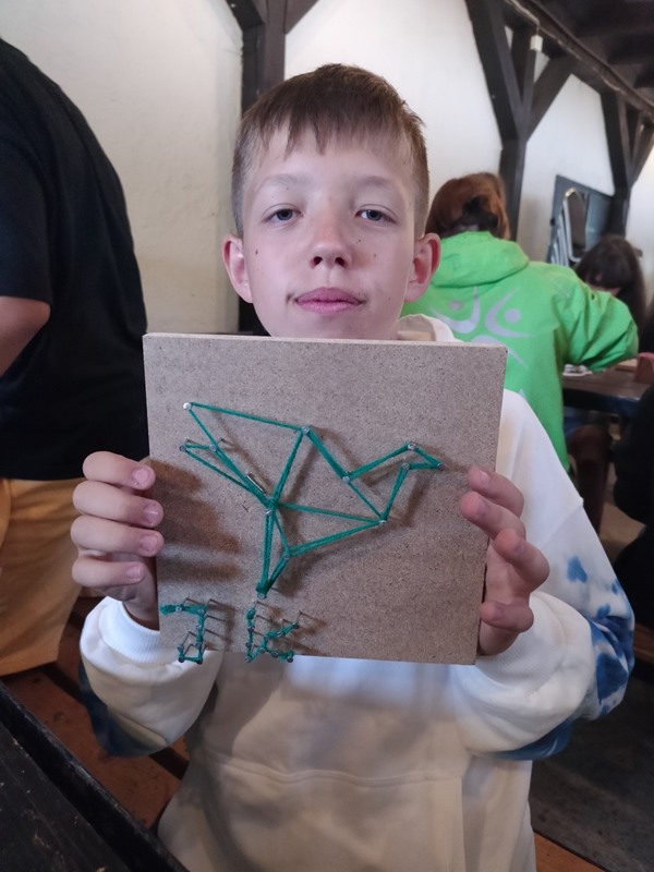 Gdy nadszedł upragniony przez wszystkich dzień wyjazdu, uczestnicy punktualnie przybyli na miejsce zbiórki, by wyruszyć w podróż do Krainy Wielkich Jezior. Po przybyciu na miejsce uczniowie udali się na obiad, a następnie podzieleni na grupy uczestniczyli w zajęciach przygotowanych na ten dzień. Klasa 8b uczestniczyła w zajęciach survivalowych. Podczas zajęć uczyli się podstaw przetrwania w terenie: budowa szałasu, rozpalania ogniska za pomocą krzemieni. W tym czasie klasa 8a uczestniczyła w warsztatach kulinarnych, zaś najmłodsza grupa w warsztatach DIY – zrób to sam, podczas których wykonali przepiękne obrazki z kolorowych sznurków i gwoździków. Na koniec dnia zaplanowane zostało ognisko z pieczeniem kiełbasek.