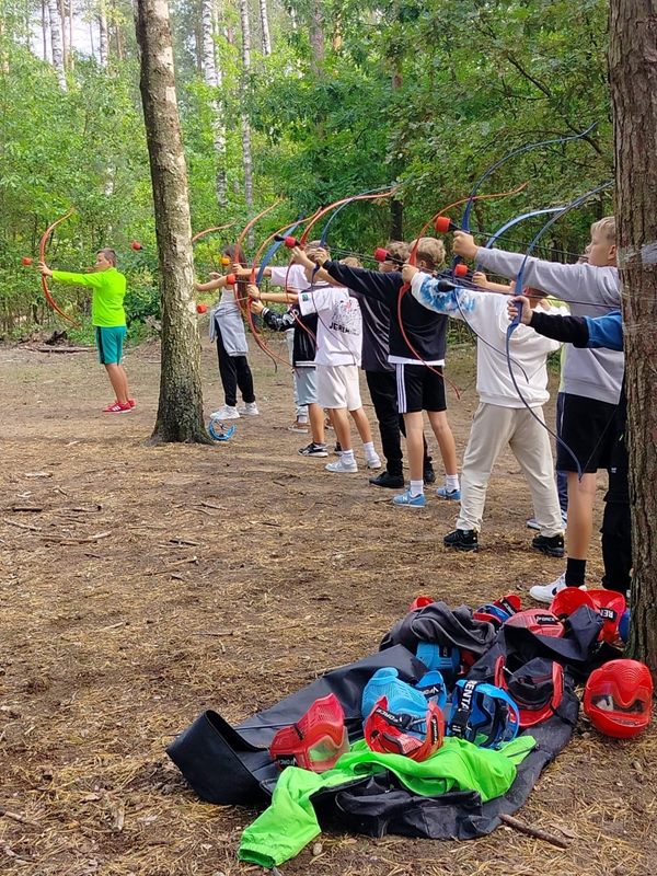 Dzień drugi rozpoczęliśmy pysznym śniadaniem, po czym grupami udaliśmy się na warsztaty i zabawy terenowe przygotowane na ten dzień: Archery Tag, czyli walki Łuczników, to połączenie gry paintball z dwoma ogniami, Flagi – głównym celem gry jest zdobycie flag przeciwnej drużyny i dostarczenie ich na swój teren. O godzinie 19.30 odwiedziliśmy Twierdzę Boyen – uczniowie brali udział w grze terenowej „ Tajemnica płk. Busse”.