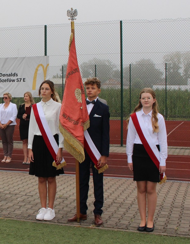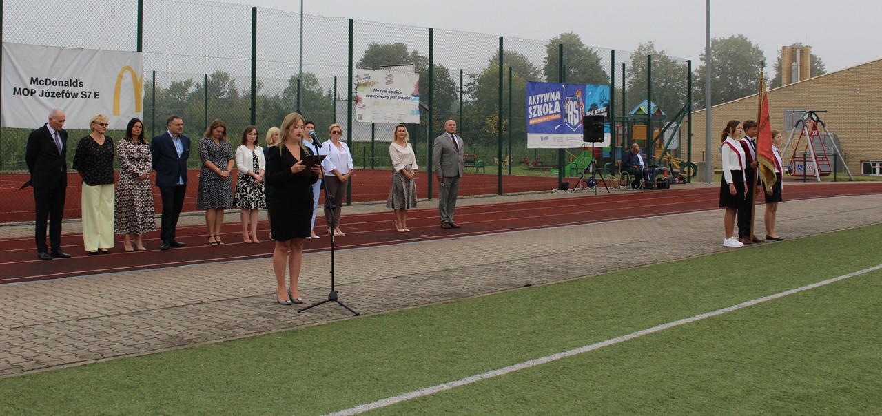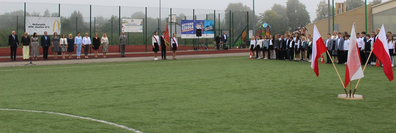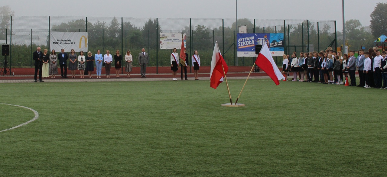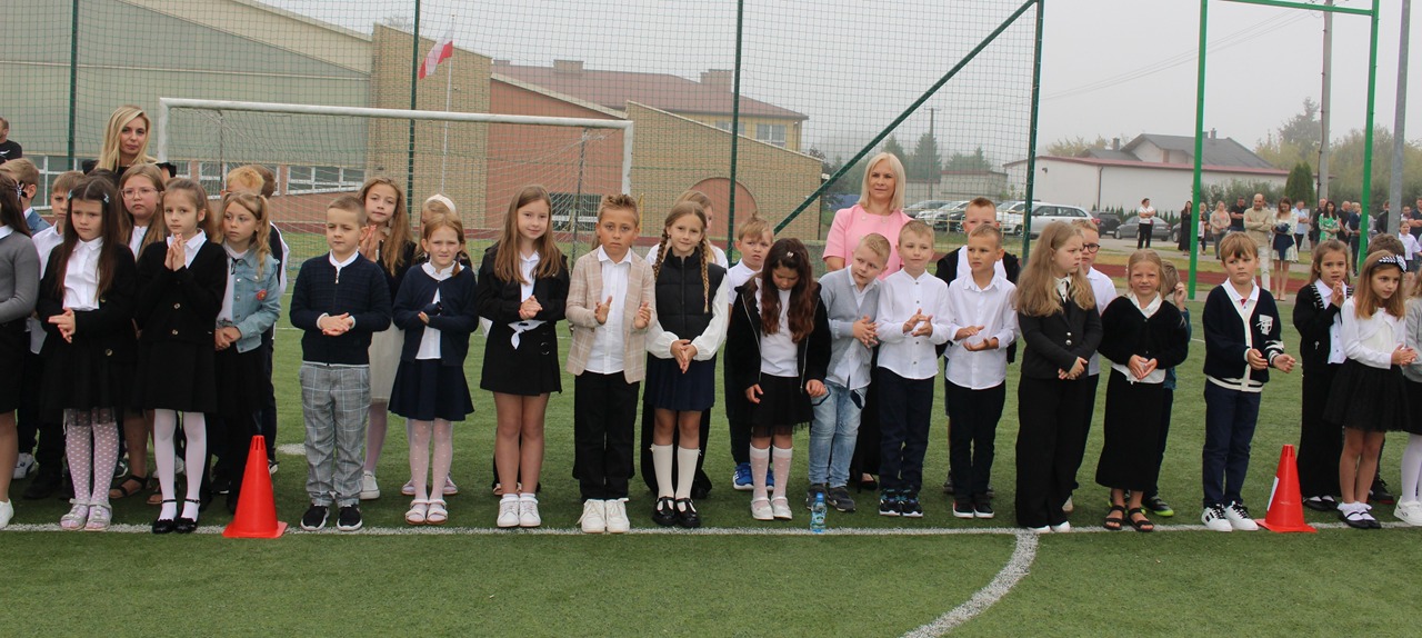 Po mszy, o godzinie 8:45, uczniowie, rodzice, nauczyciele oraz zaproszeni goście zgromadzili się na stadionie szkolnym, gdzie odbyła się część oficjalna uroczystości. Pan Dyrektor serdecznie powitał wszystkich obecnych, życząc uczniom wielu sukcesów, wytrwałości oraz radości z nauki. Głos zabrał również Sekretarz Gminy Goszczyn, który w imieniu władz samorządowych przekazał życzenia pomyślnego roku szkolnego, pełnego inspirujących doświadczeń i dobrej współpracy.